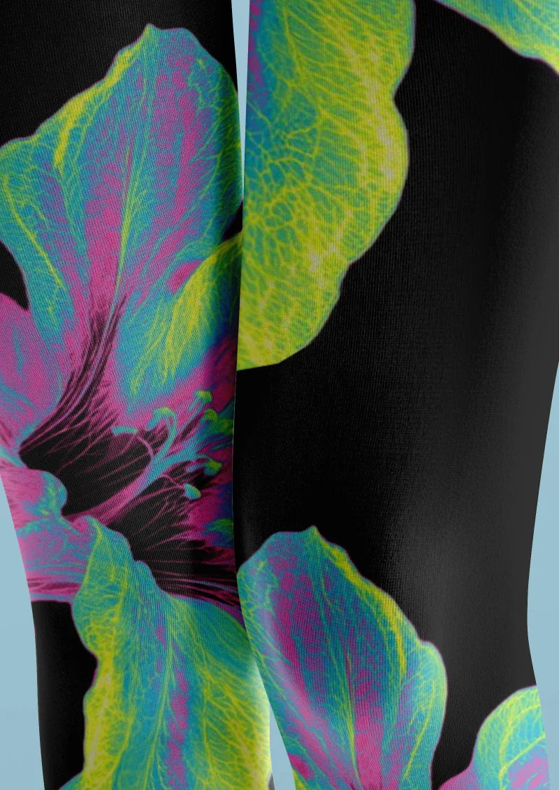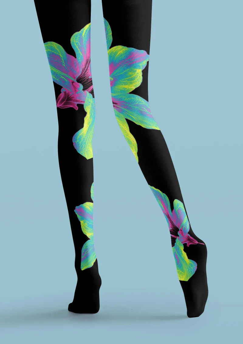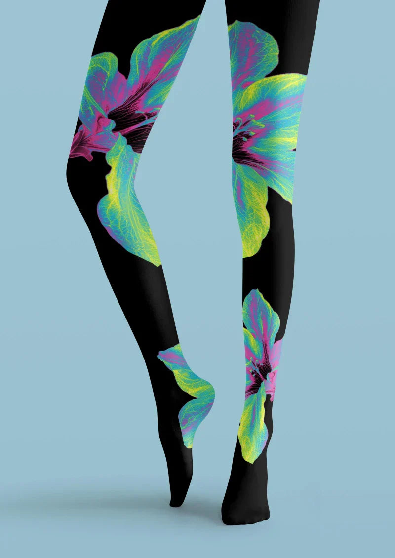 Viken Plan Black Colorful Leaf Floral Tights Hosiery Pantyhose