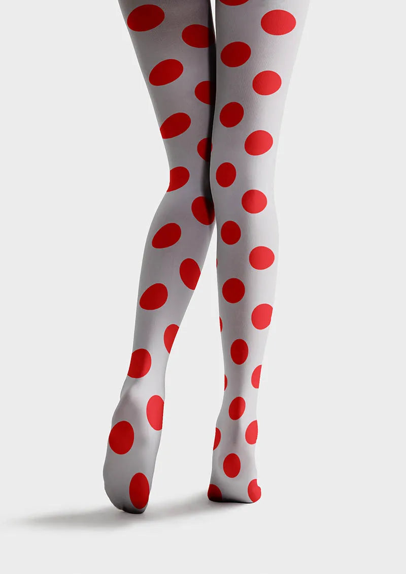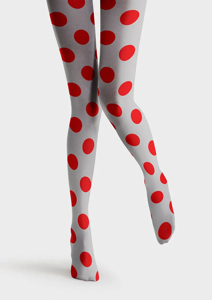Viken Plan Grey-Red Dots Tights Hosiery Pantyhose