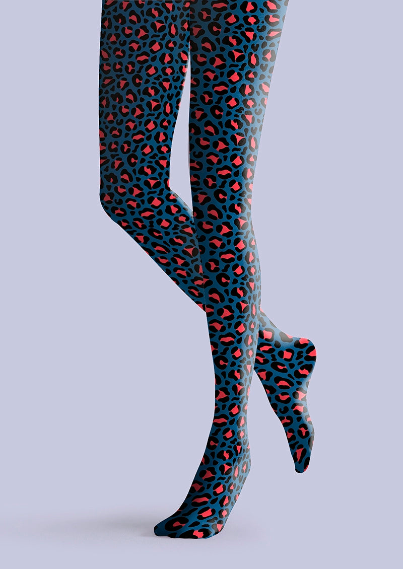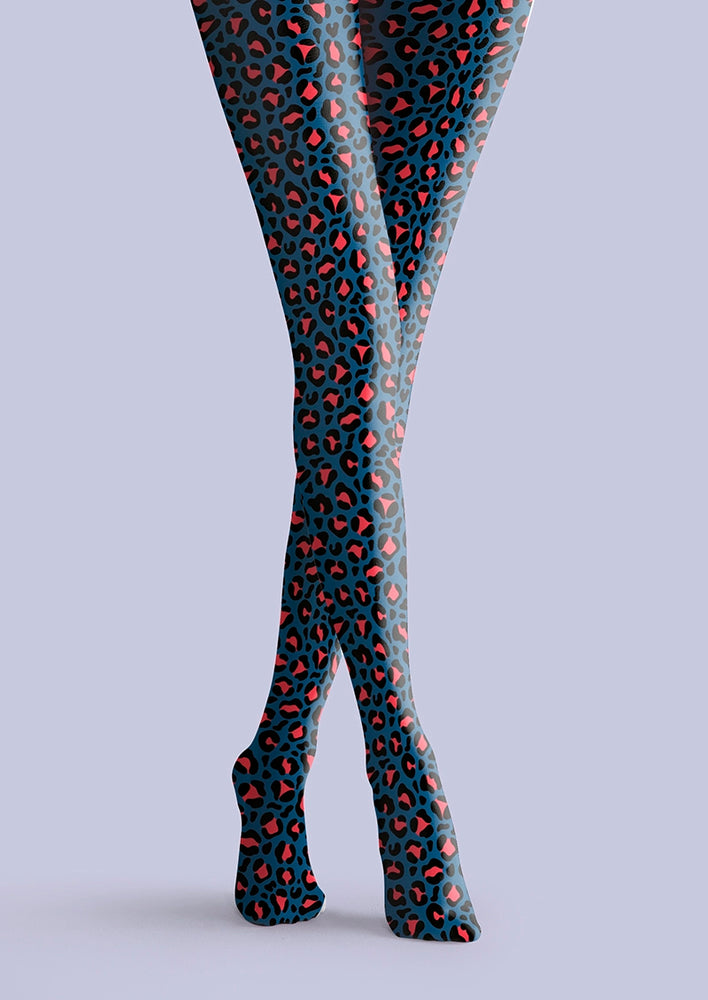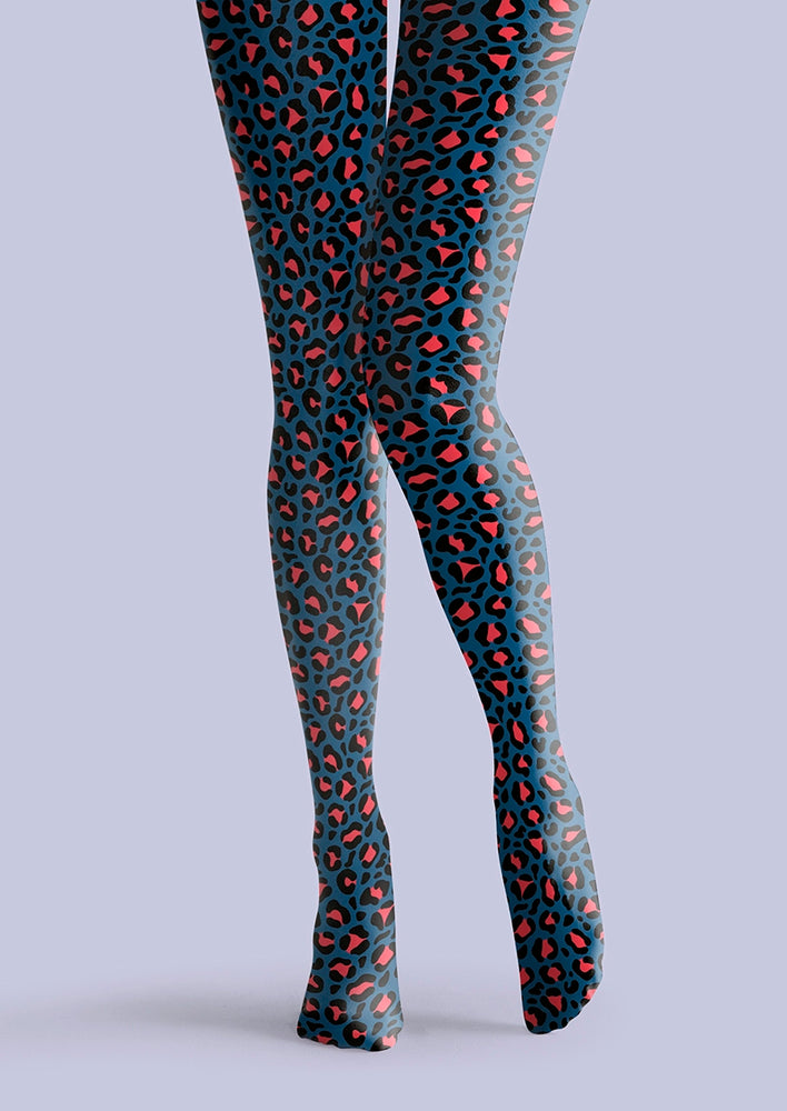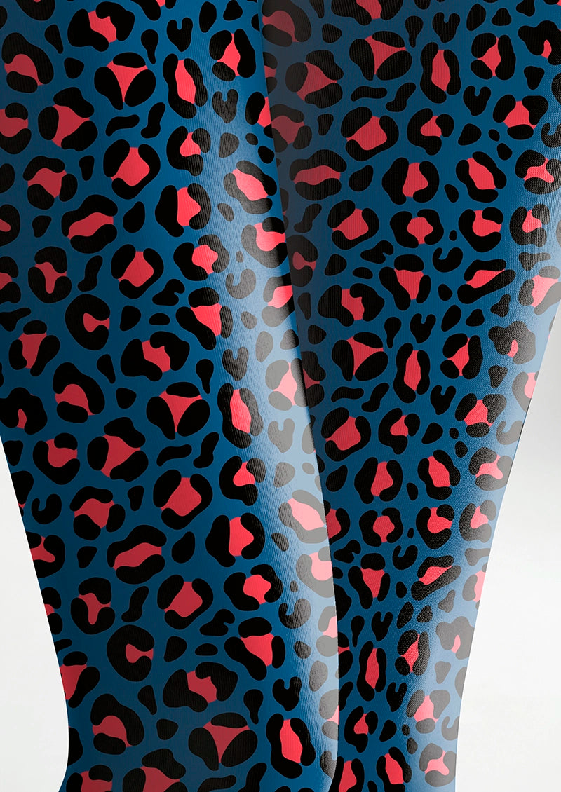 Viken Plan Deep Blue Pink Leopard Tights Hosiery Pantyhose