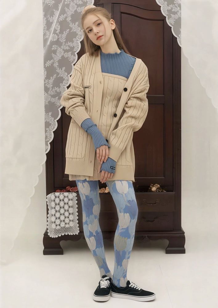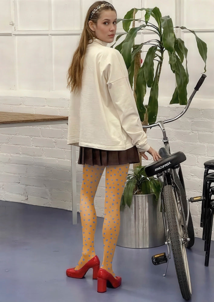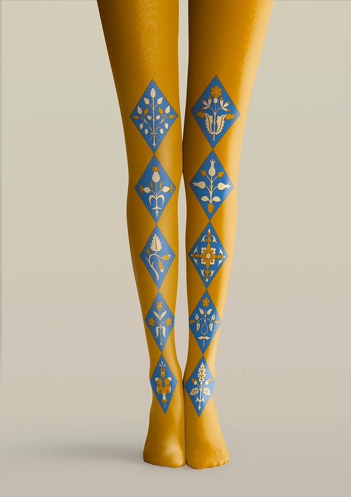 Our Blue Patterned Tights Collection fuses rich blue hues with eye-catching prints—from dreamy florals and geometric accents to surreal or playful motifs. The deep or vibrant blue base adds cool sophistication, while the prints bring unexpected personality to every look. Perfect for those who want color and creativity in one confident step.