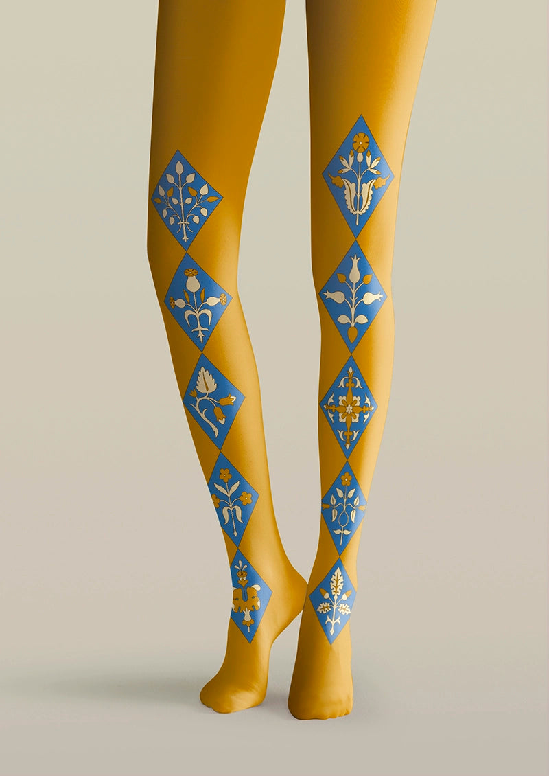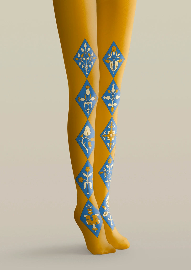 Viken Plan Floral Diamond Pattern Tights Hosiery Pantyhose