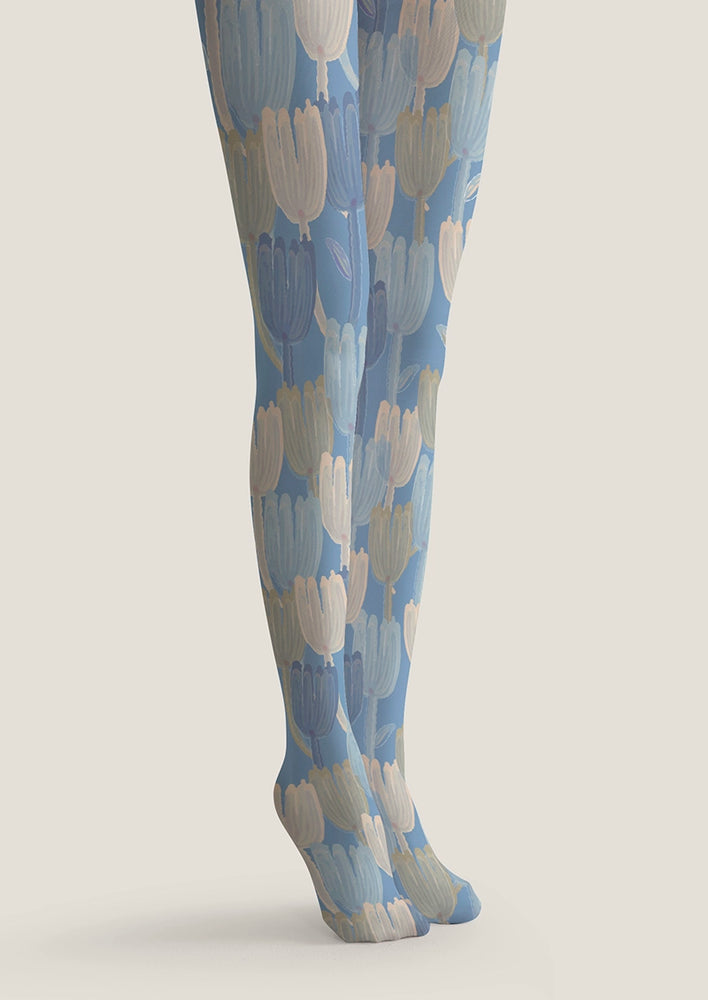 Tights with an oil painting-style floral pattern. An artistic, elegant, and unique designer legwear piece.
