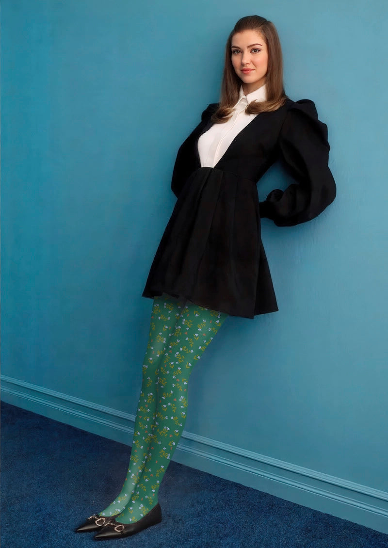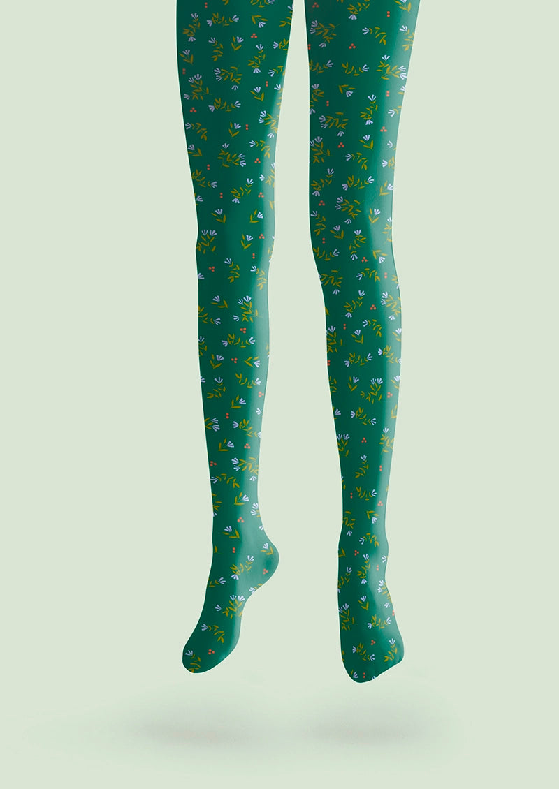 Viken Plan Turquoise green Dainty florals Tights Hosiery Pantyhose
