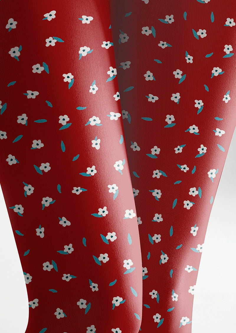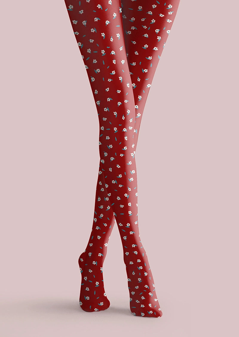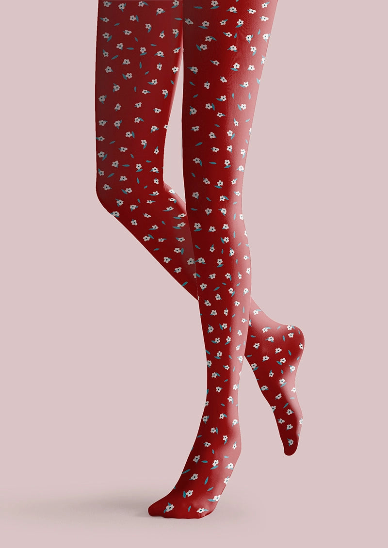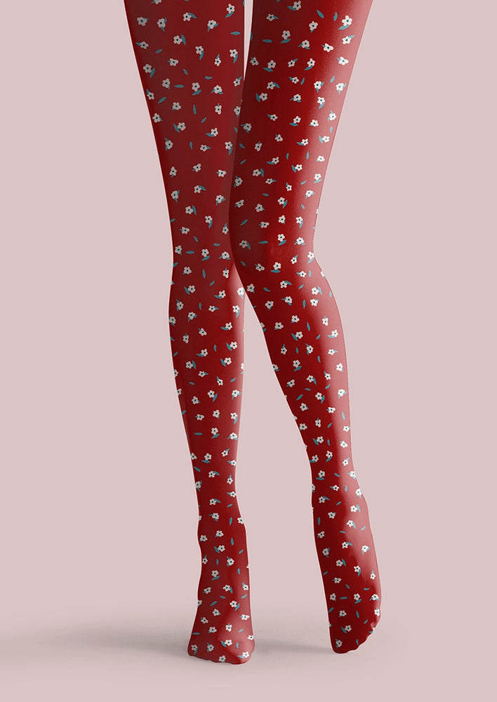 Red tights with a delicate ditsy floral print. A vibrant, bold, and romantic legwear statement.
