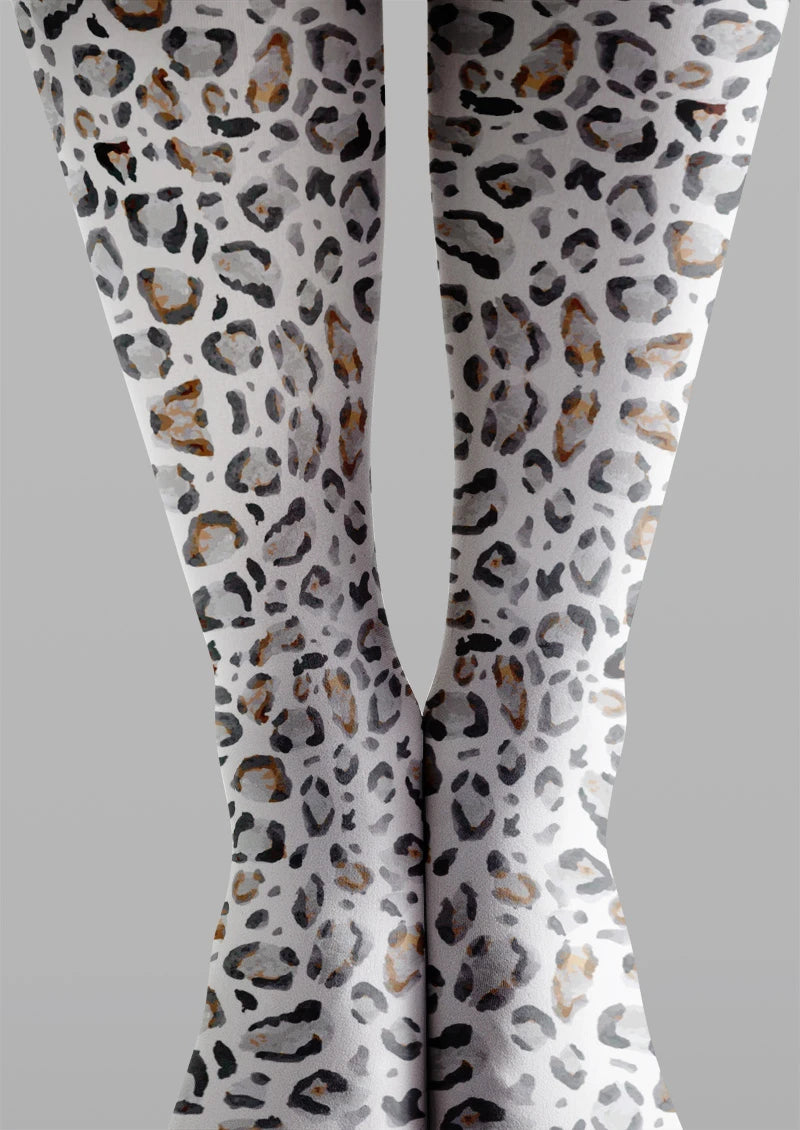 Viken Plan White Leopard Print Tights Hosiery Pantyhose
