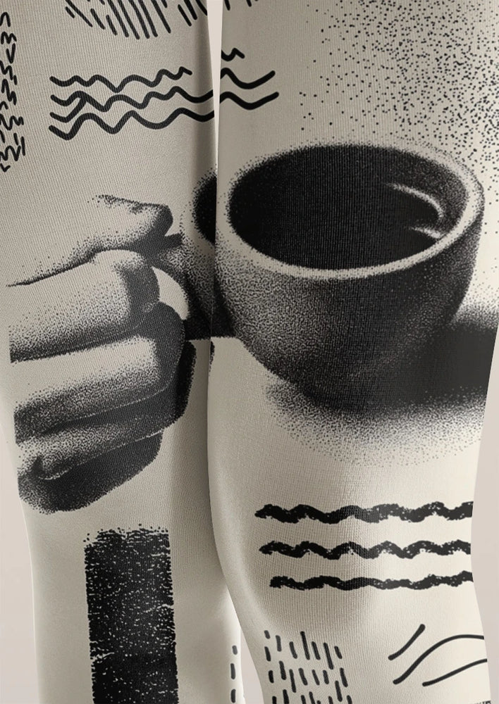 Dynamic black-and-white coffee print create a bold, modern statement.