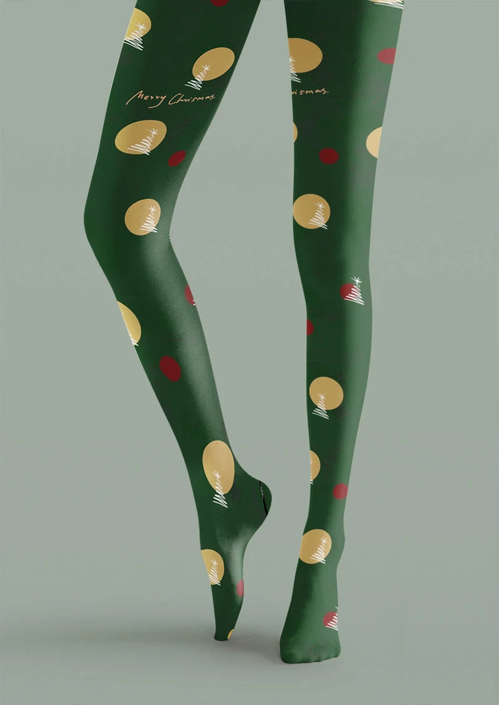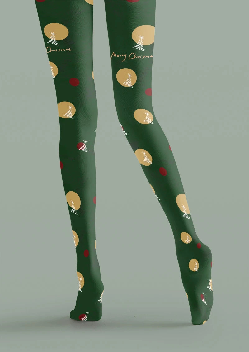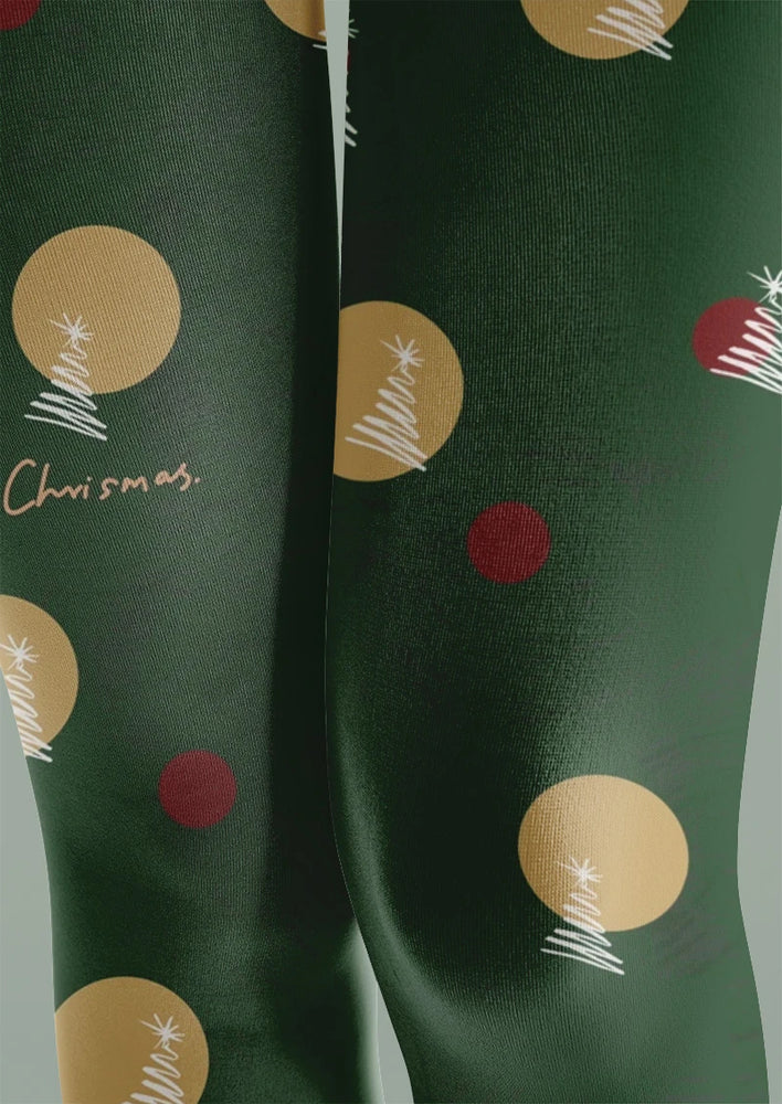 Viken Plan Green Merry Christmas Dots Tights Hosiery Pantyhose