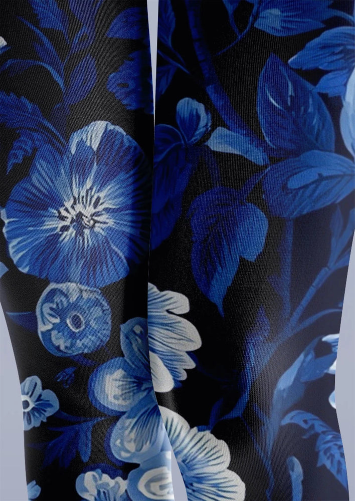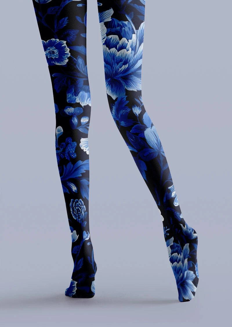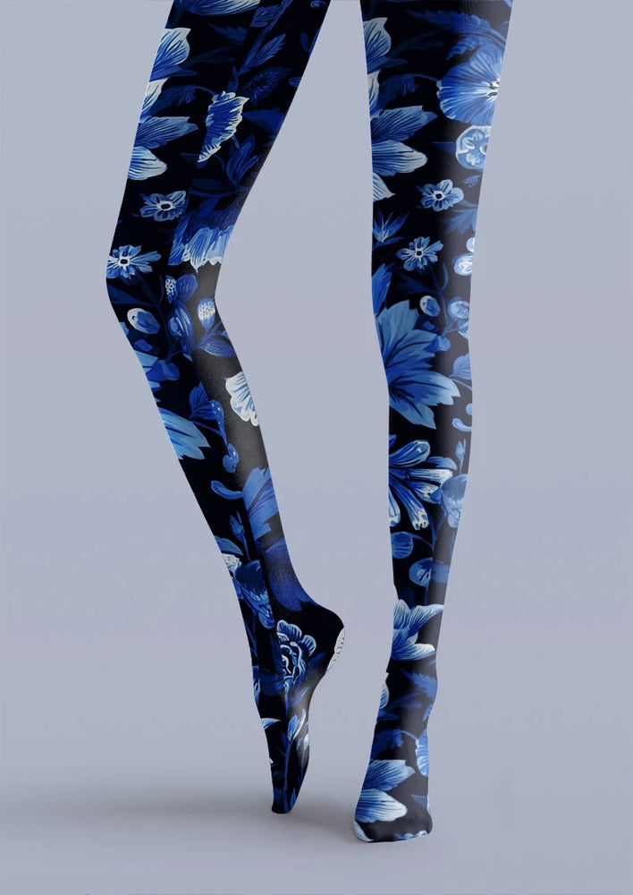 Viken Plan Blue Floral Tights Hosiery Pantyhose