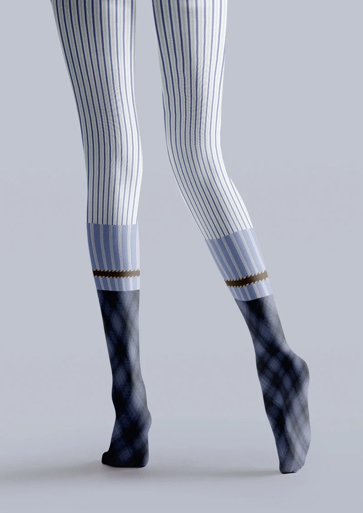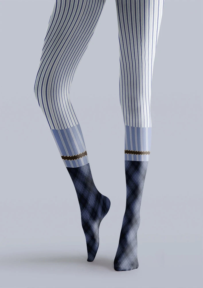 Viken Plan Blue Pinstripe Two-Tone Tights Hosiery Pantyhose
