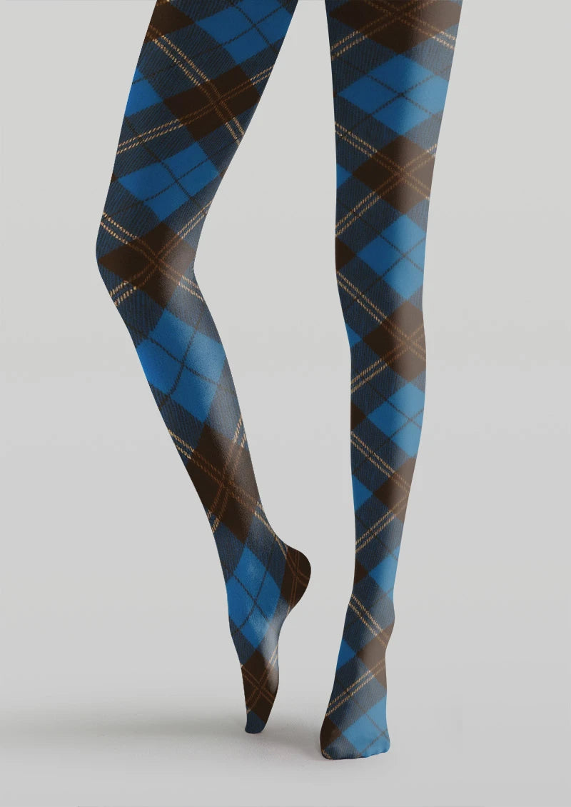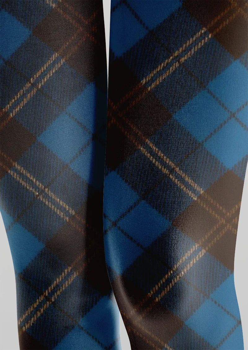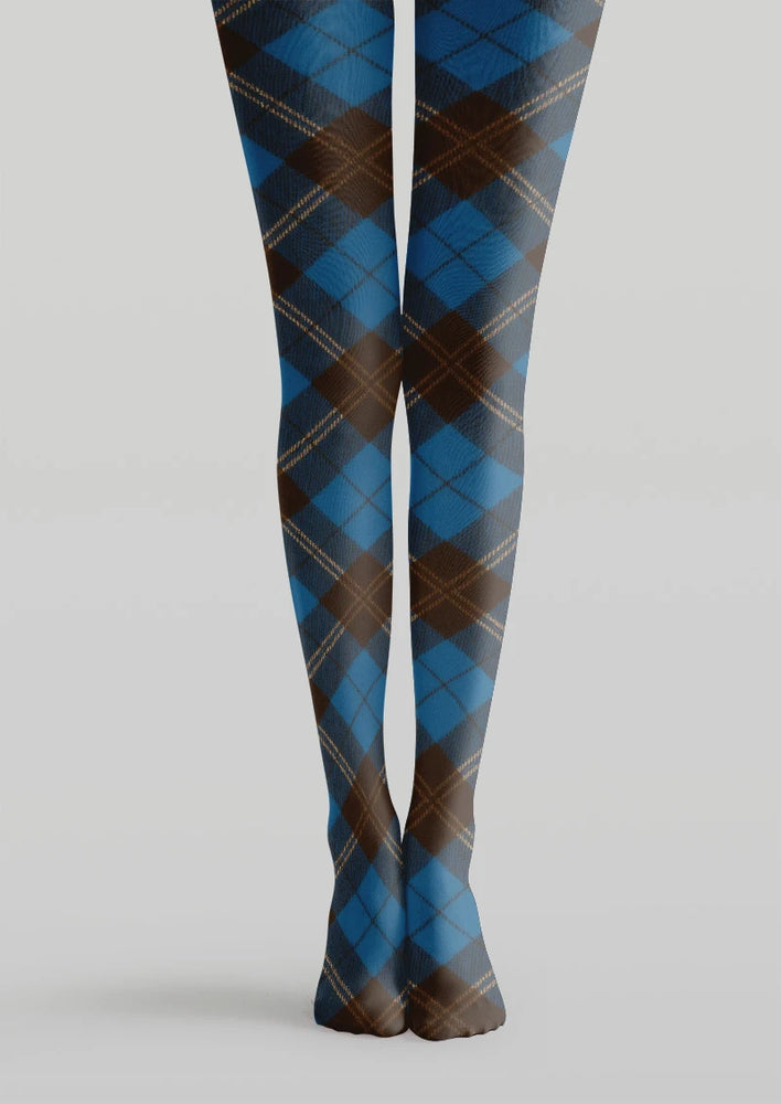 Viken Plan Blue & Brown Argyle Tights Hosiery Pantyhose