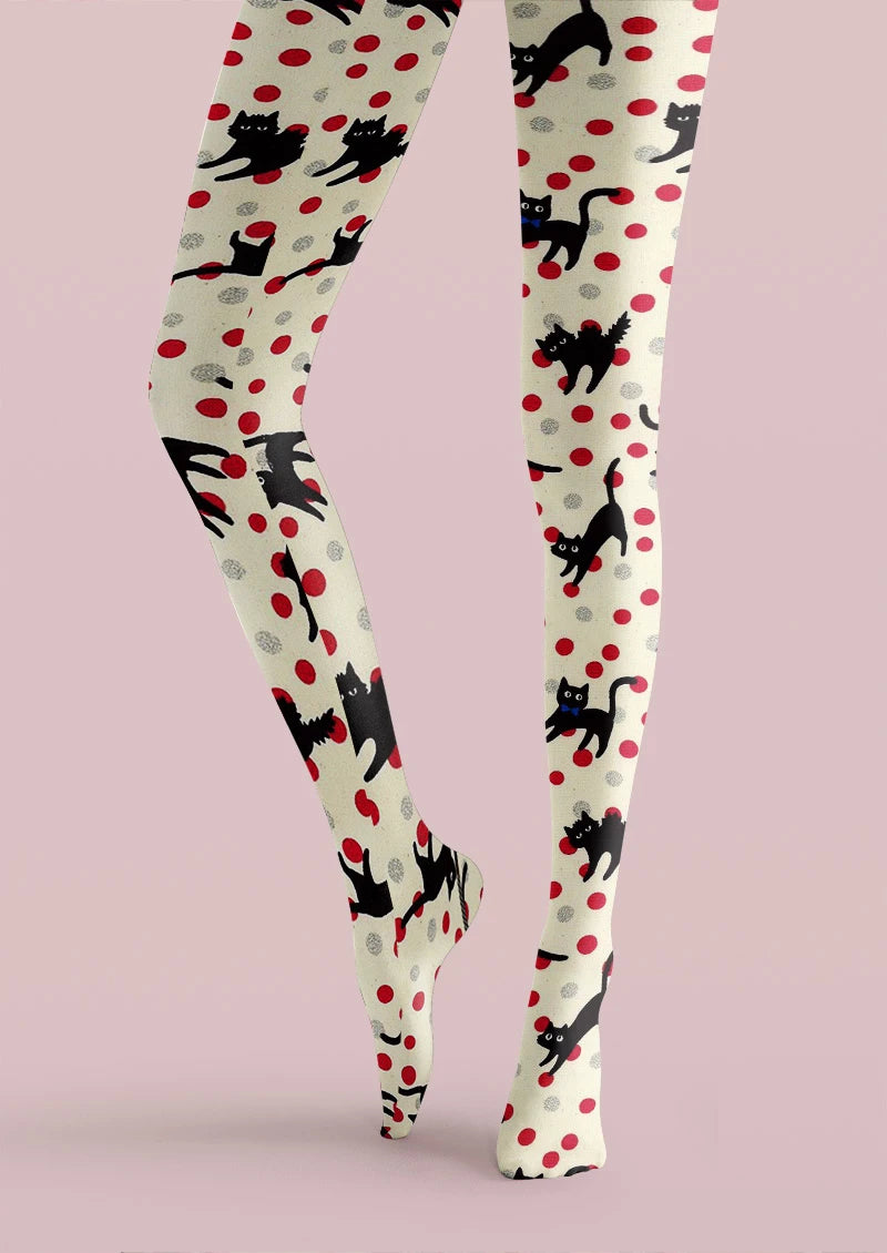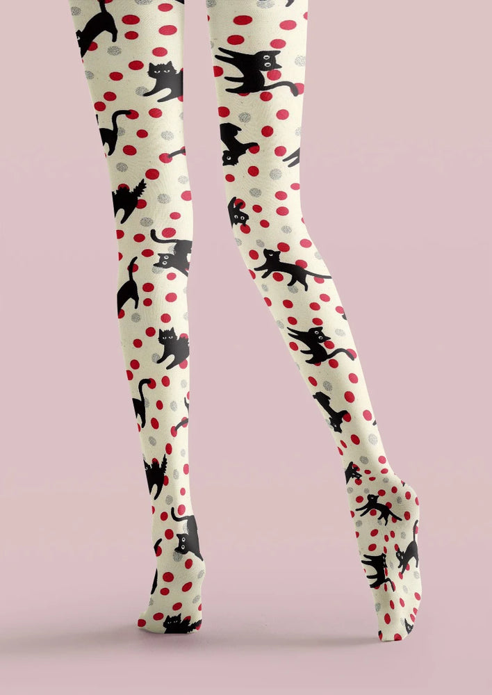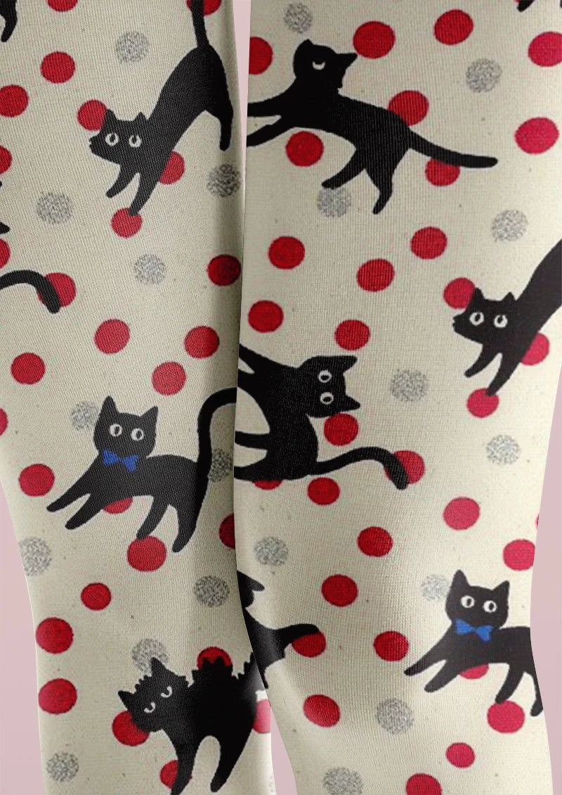 Viken Plan Playful Cat Dot Tights Hosiery Pantyhose