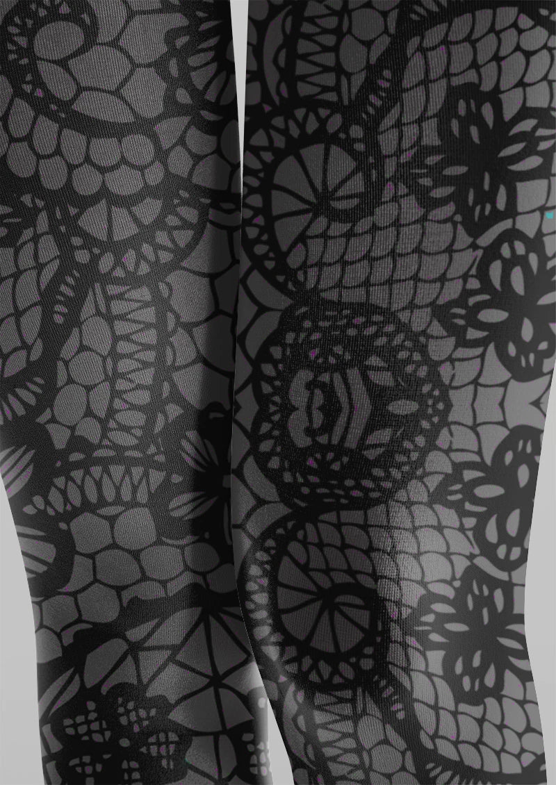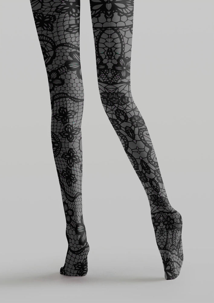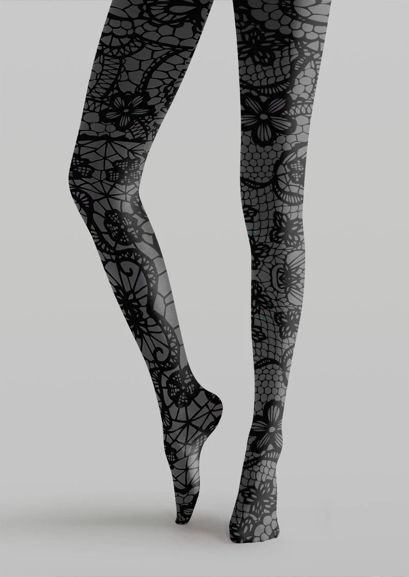 Viken Plan Noir Lace Bloom Tights Hosiery Pantyhose