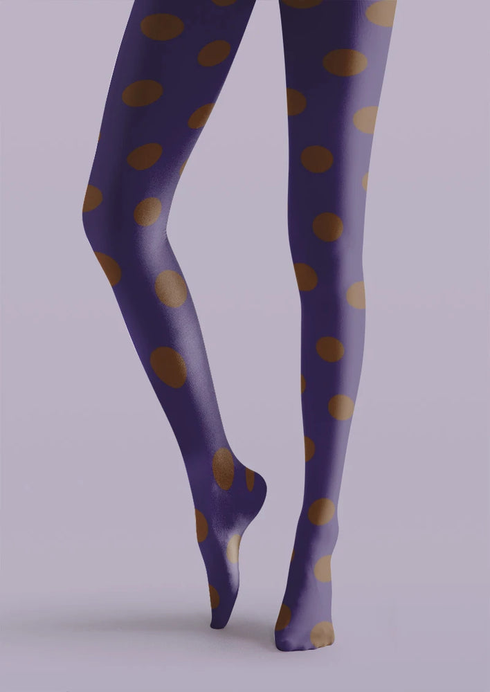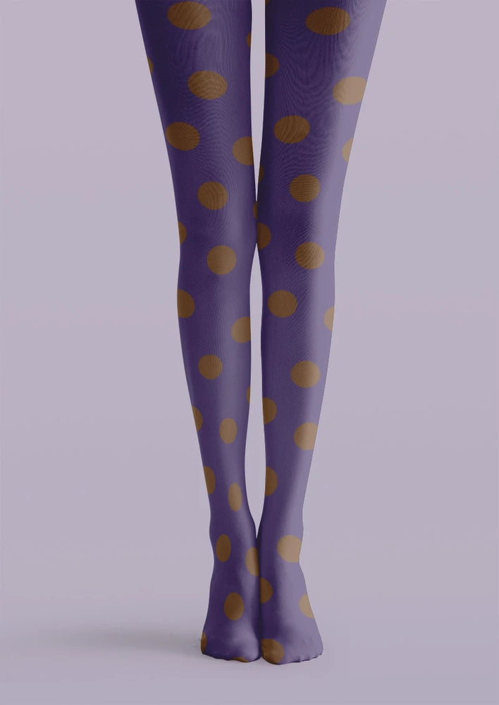 Viken Plan Purple & Gold Polka Dot Tights Hosiery Pantyhose