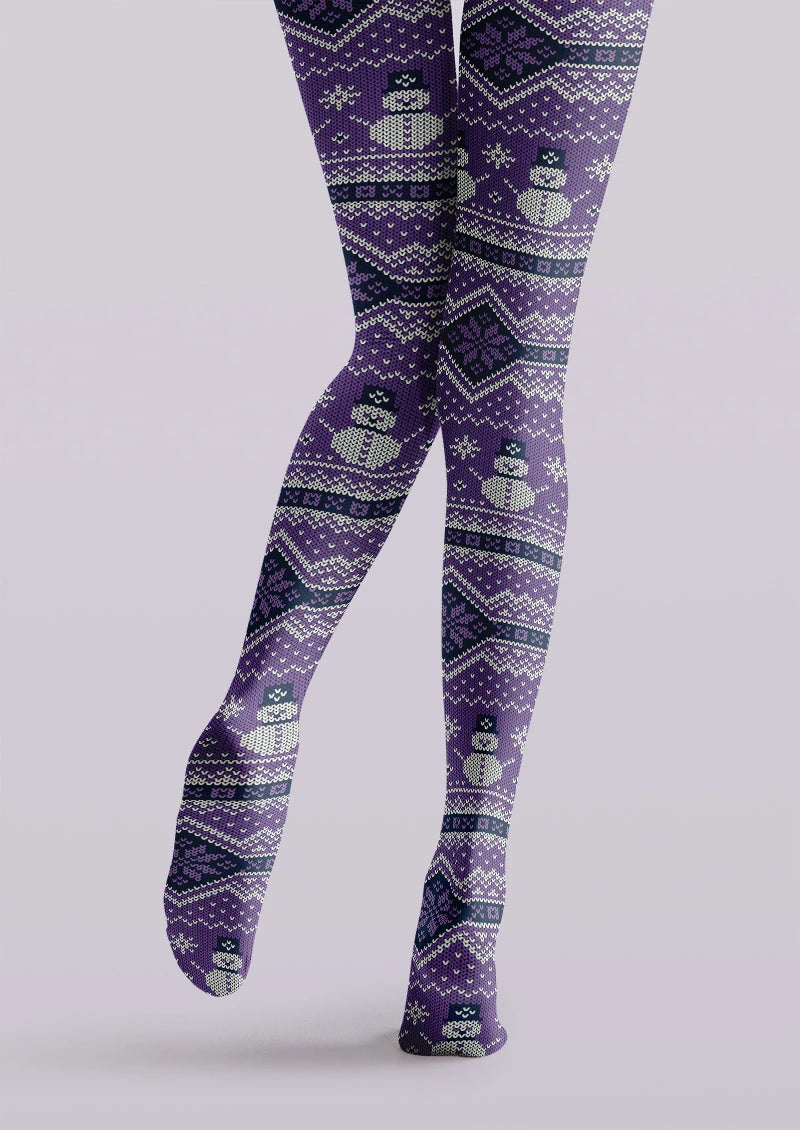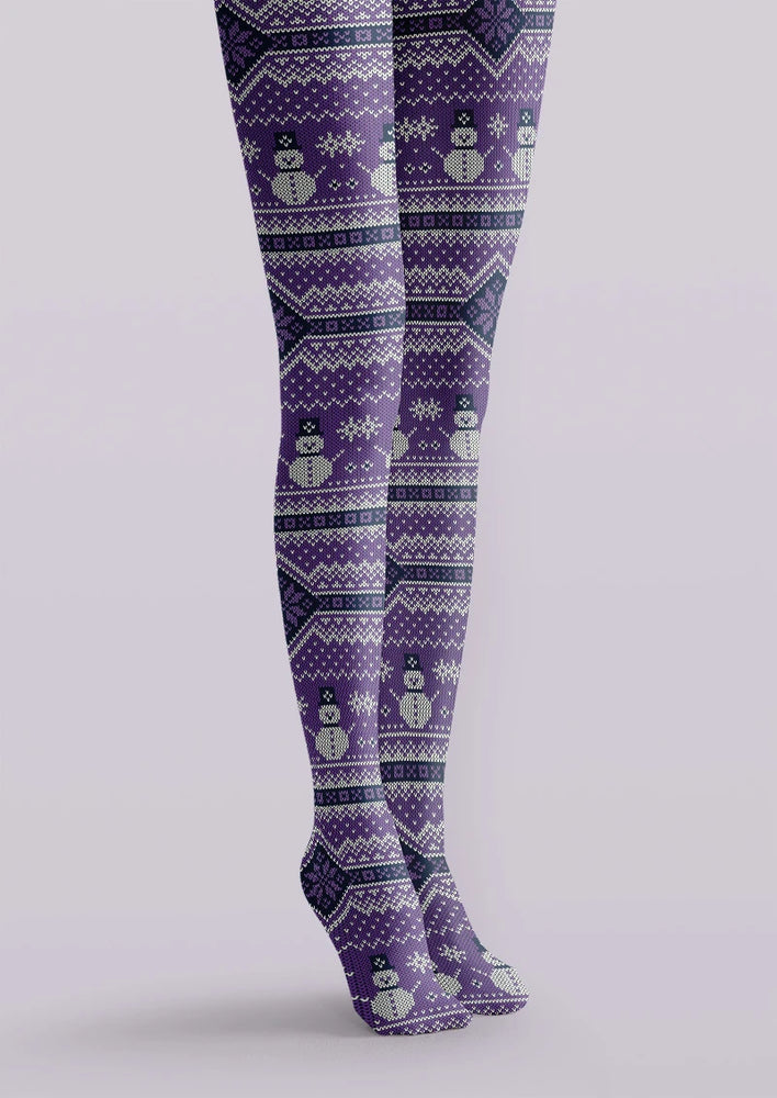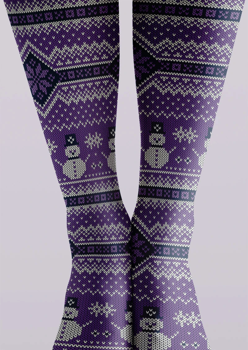 Regular price $39.90Christmas Snowman Graphic Tights with cute snowman prints, festive and purple-hued. Great for holiday casual looks.