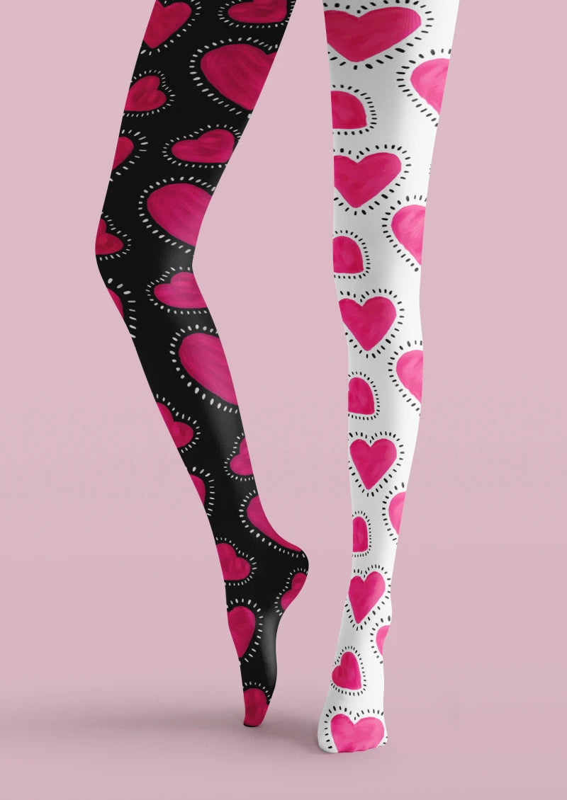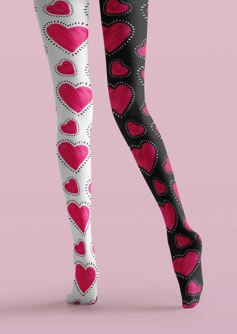 Viken Plan Valentine's Day Pink White Heart Graphic Tights Hosiery Pantyhose