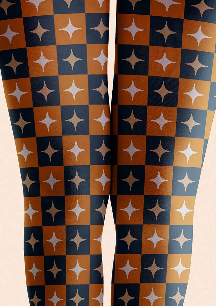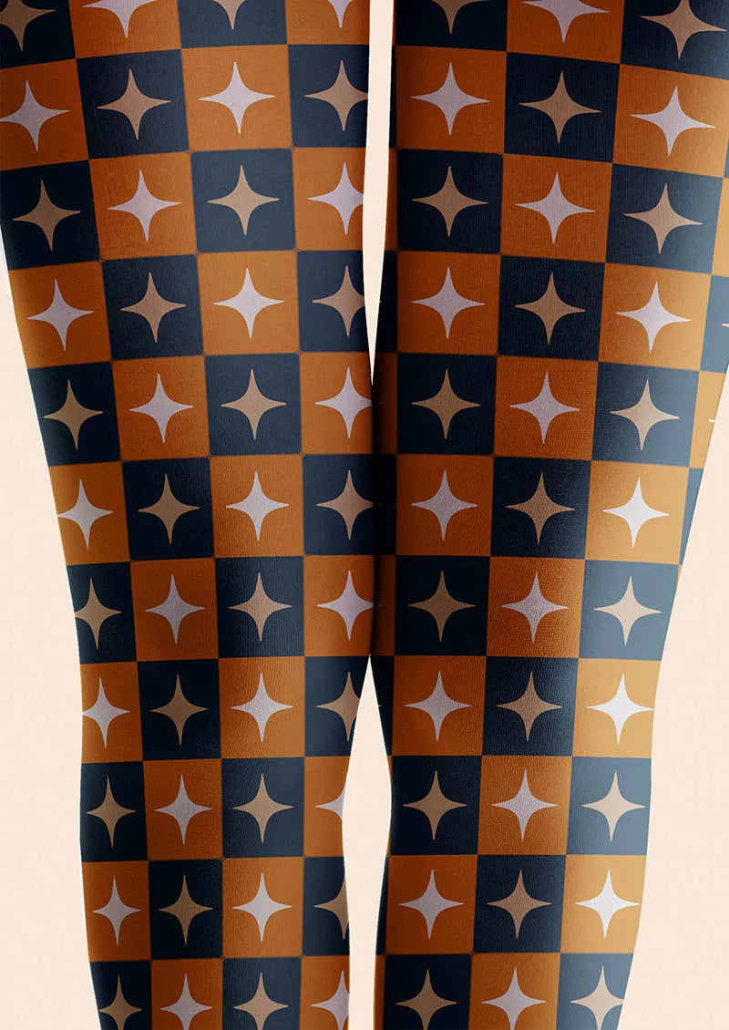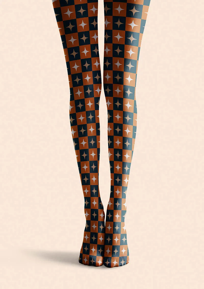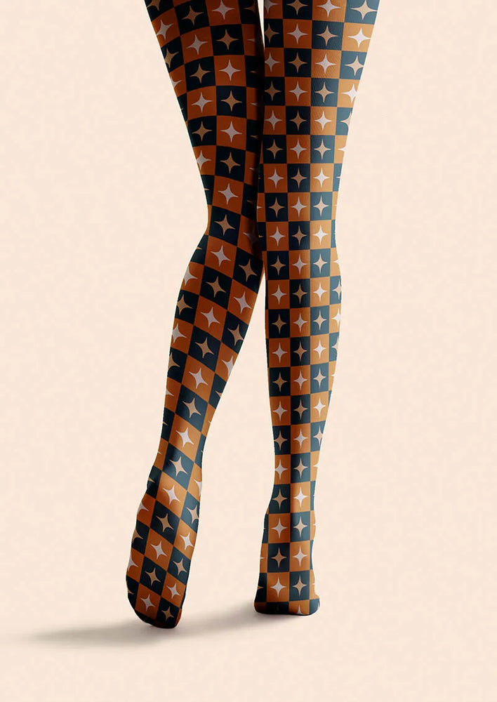 Viken Plan Geometric Art Star Grid Tights Hosiery Pantyhose