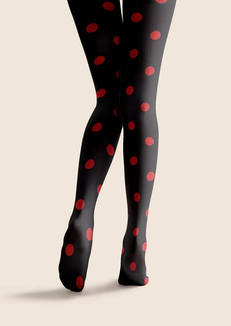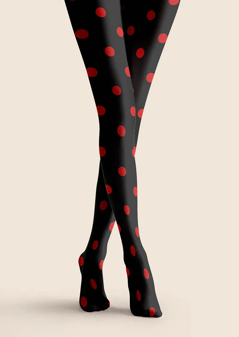 Viken Plan Christmas Retro Polka Red Tights Hosiery Pantyhose