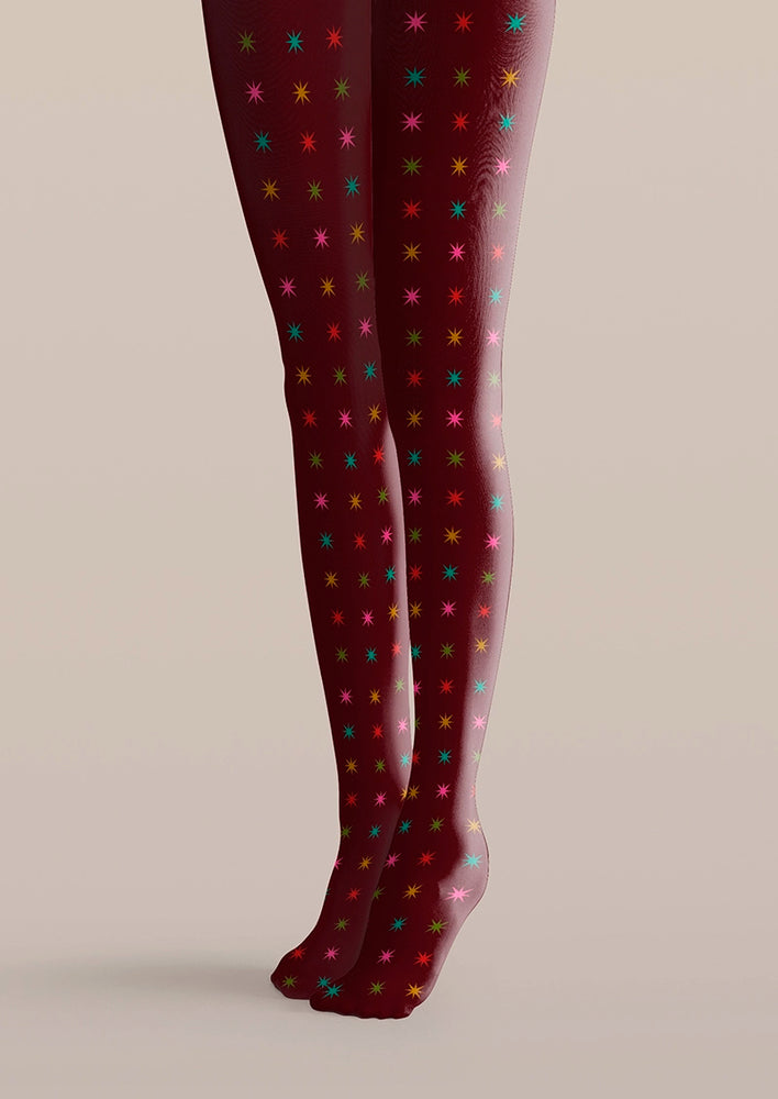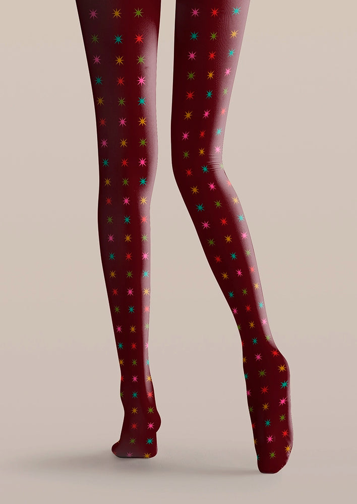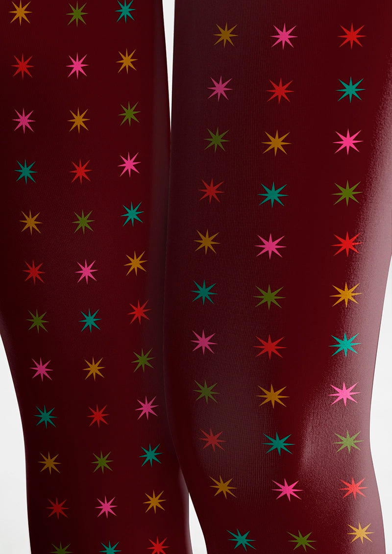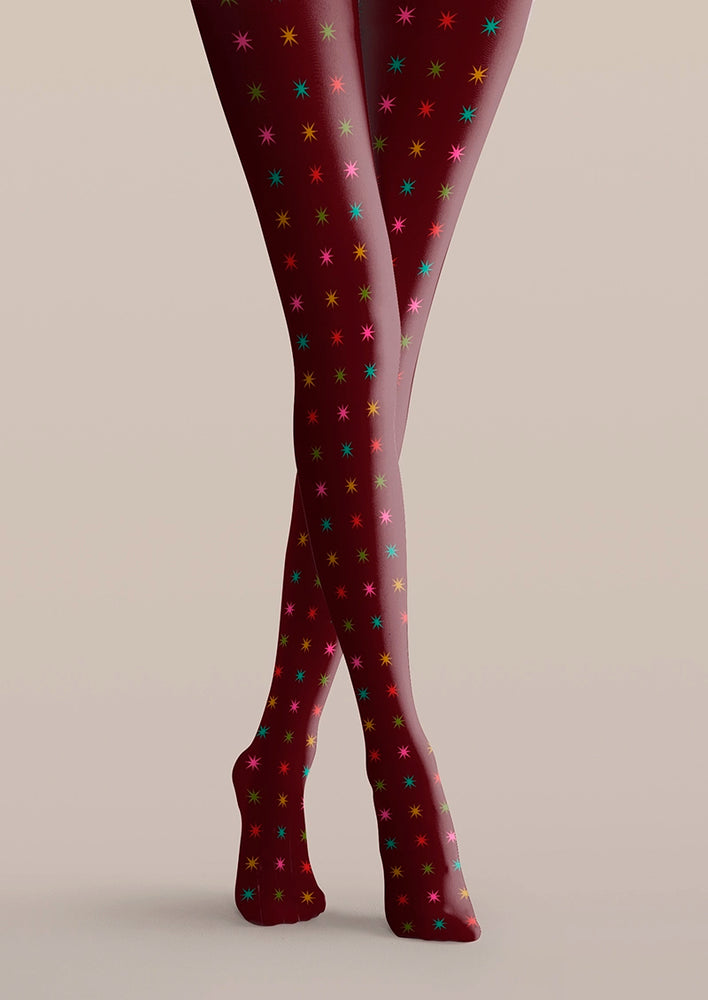 Viken Plan Burgundy Star Tights Hosiery Pantyhose