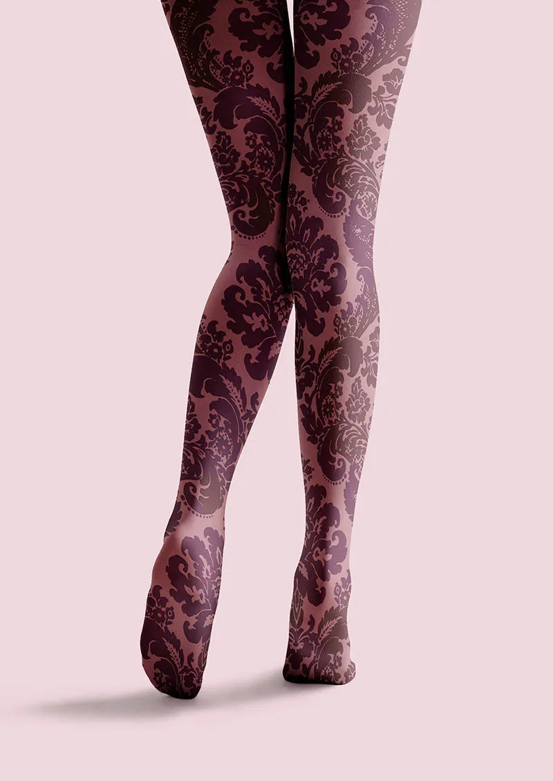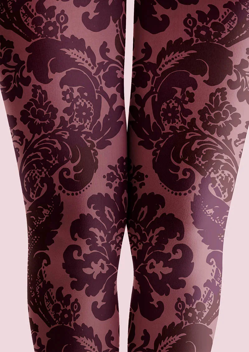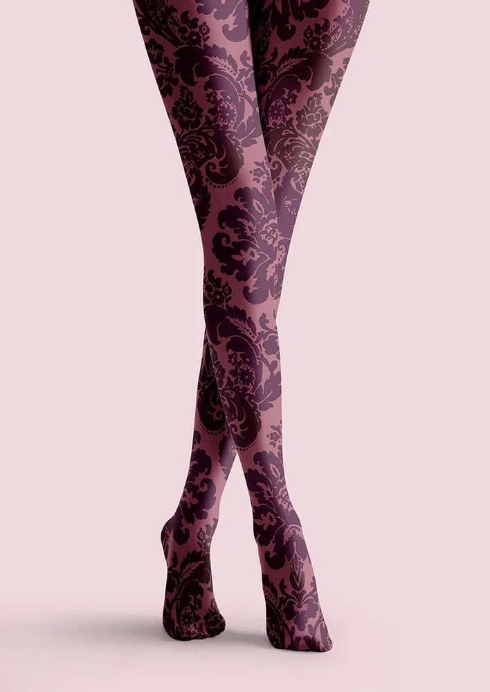 Viken Plan Baroque Bloom Plum Velvet Tights Hosiery Pantyhose