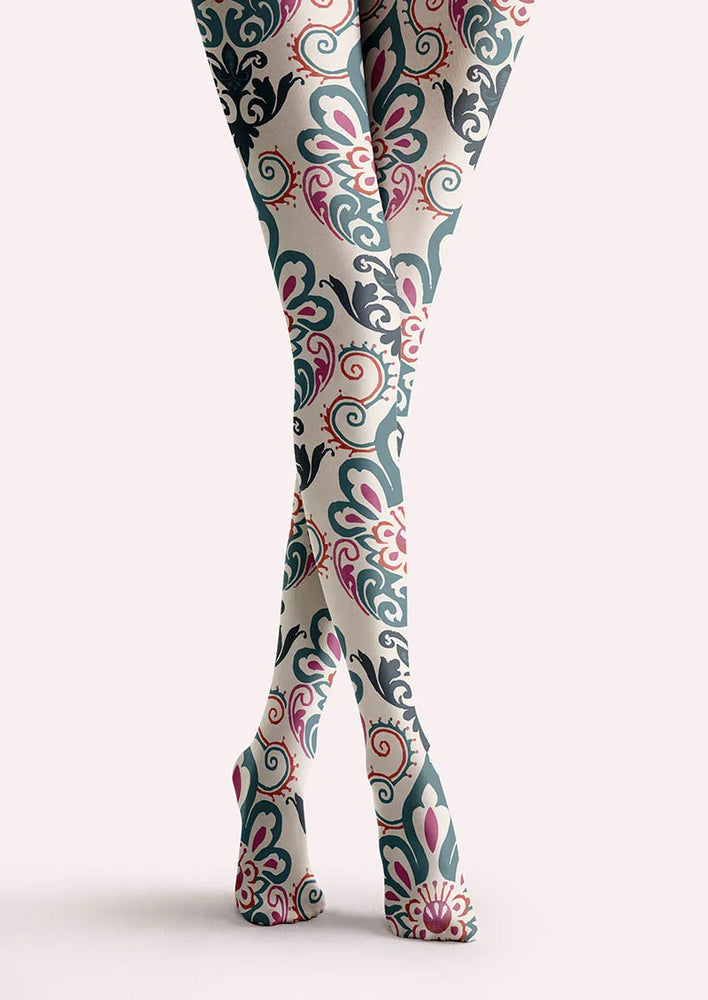 Viken Plan Baroque Bloom Porcelain Muse Tights Hosiery Pantyhose