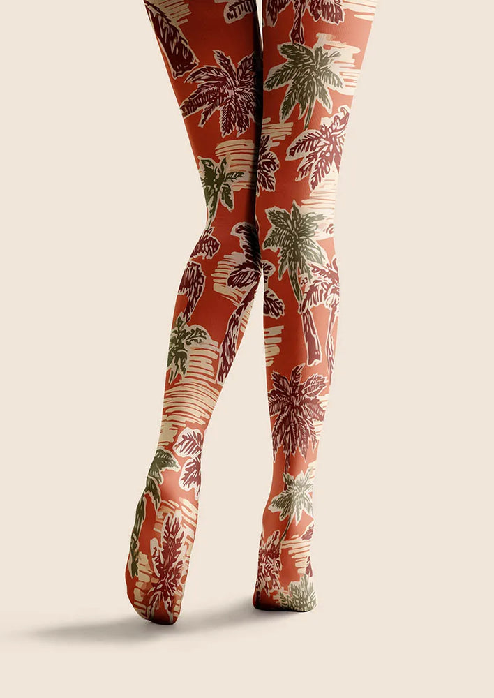 Viken Plan Hand-Drawn Palm Tights Hosiery Pantyhose