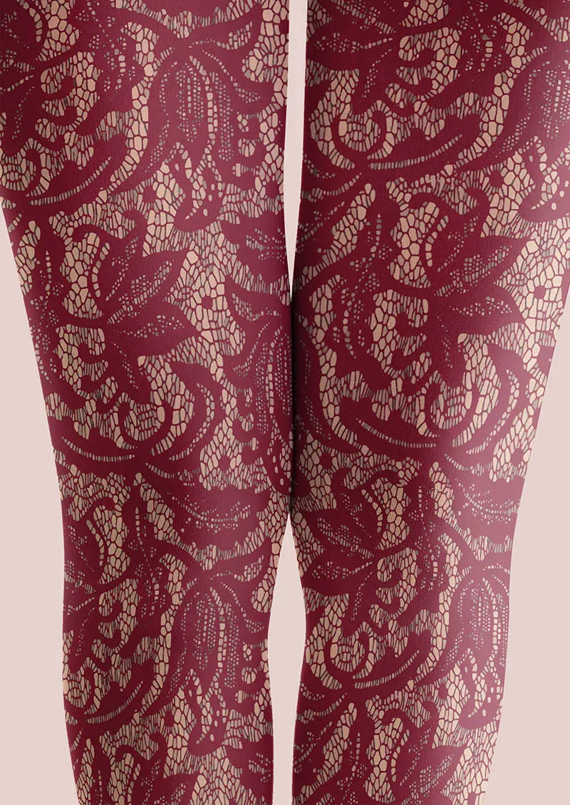 Viken Plan Lace Print Rose Grid Tights Hosiery Pantyhose