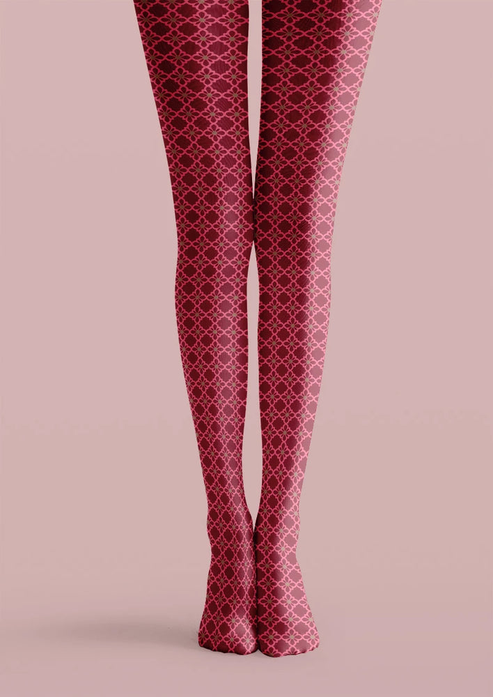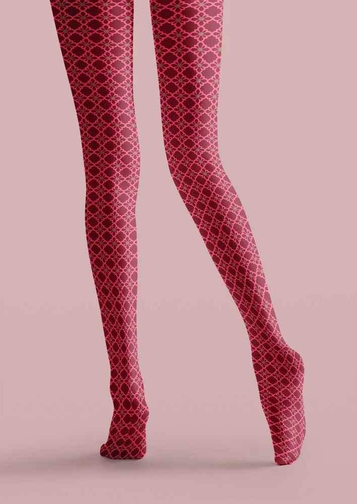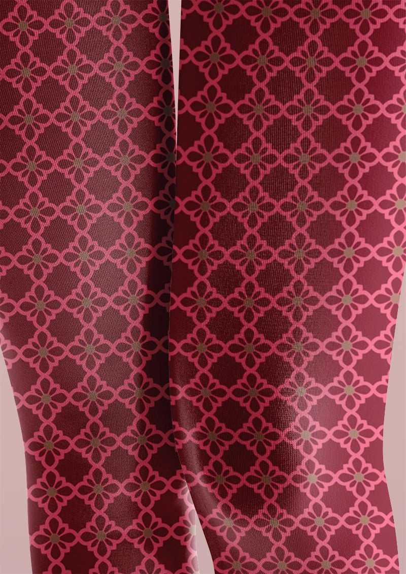 Viken Plan Crimson Quatrefoil Pattern Tights Hosiery Pantyhose