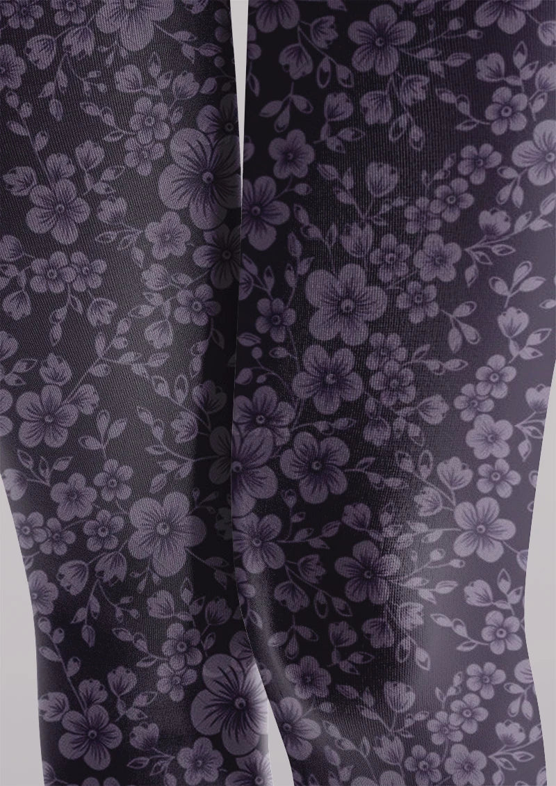 Regular price $39.90Floral Purple Tights feature delicate purple flowers, romantic and casual. Great for everyday wear or gentle date looks.