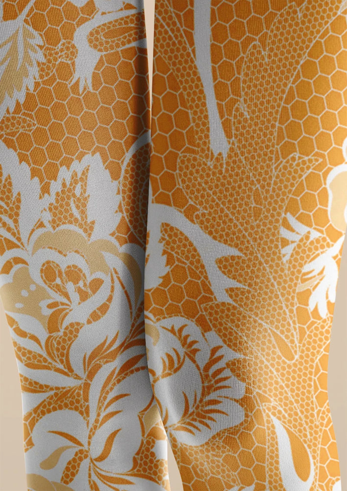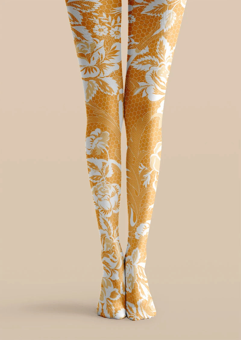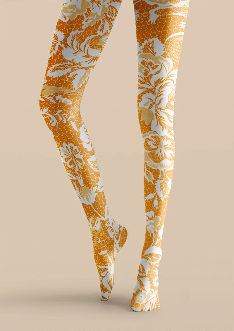 Viken Plan Golden Floral Print Tights Hosiery Pantyhose