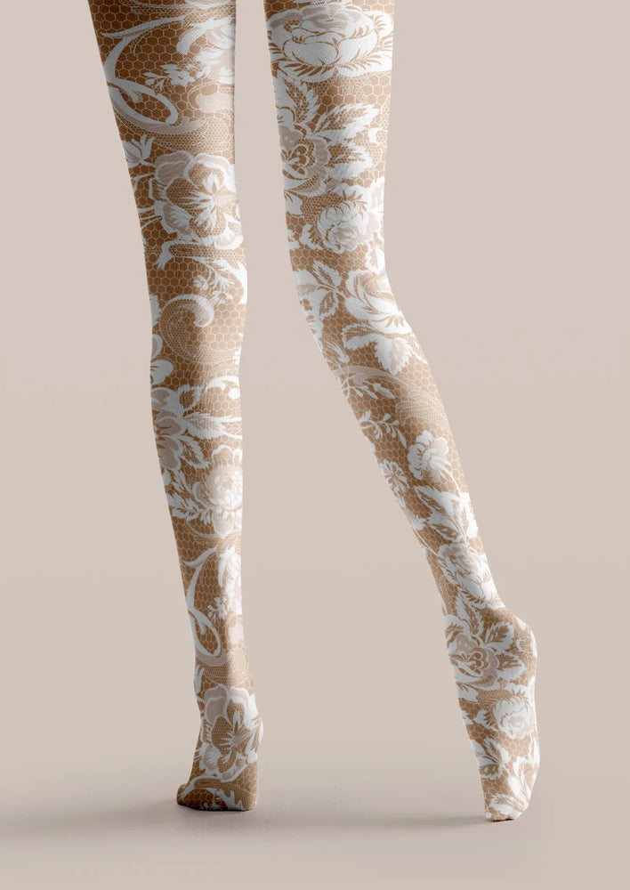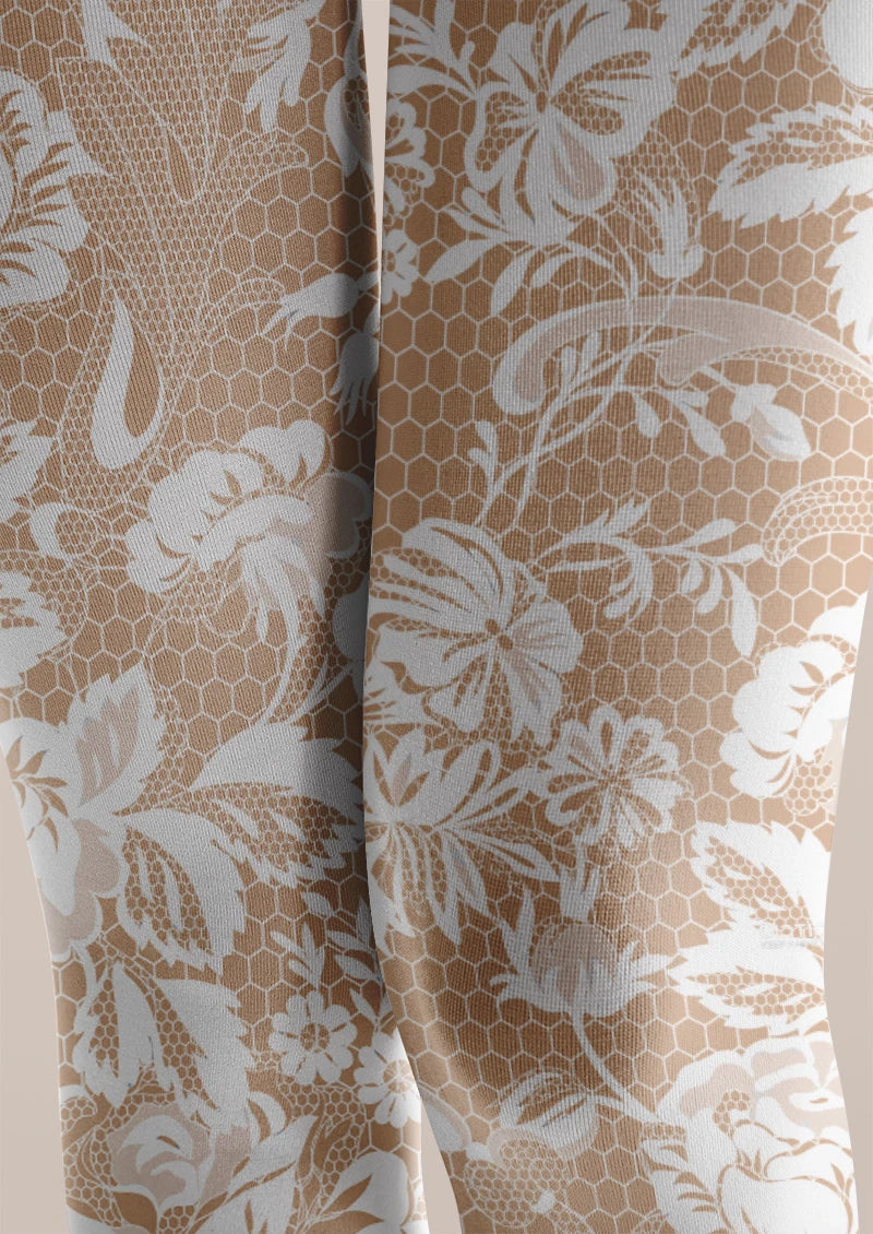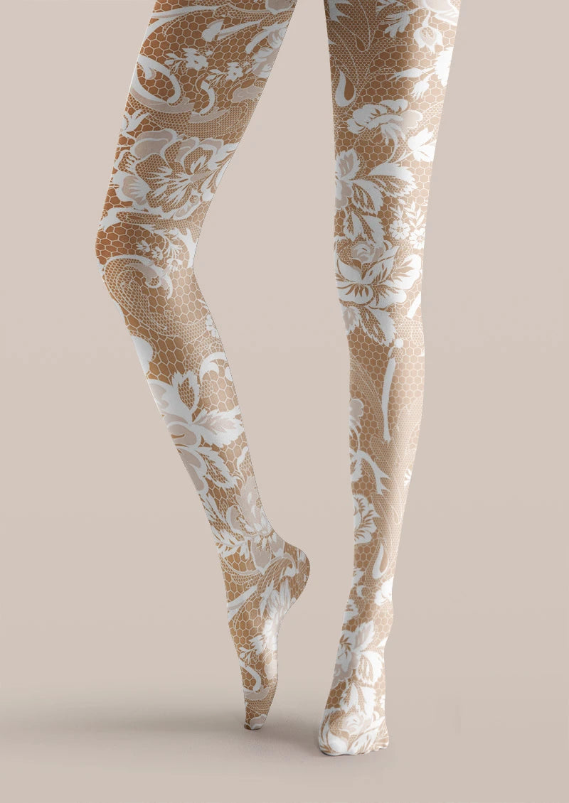 Viken Plan White Lace Floral Print Tights Hosiery Pantyhose