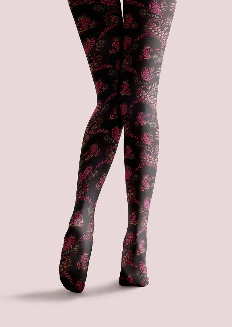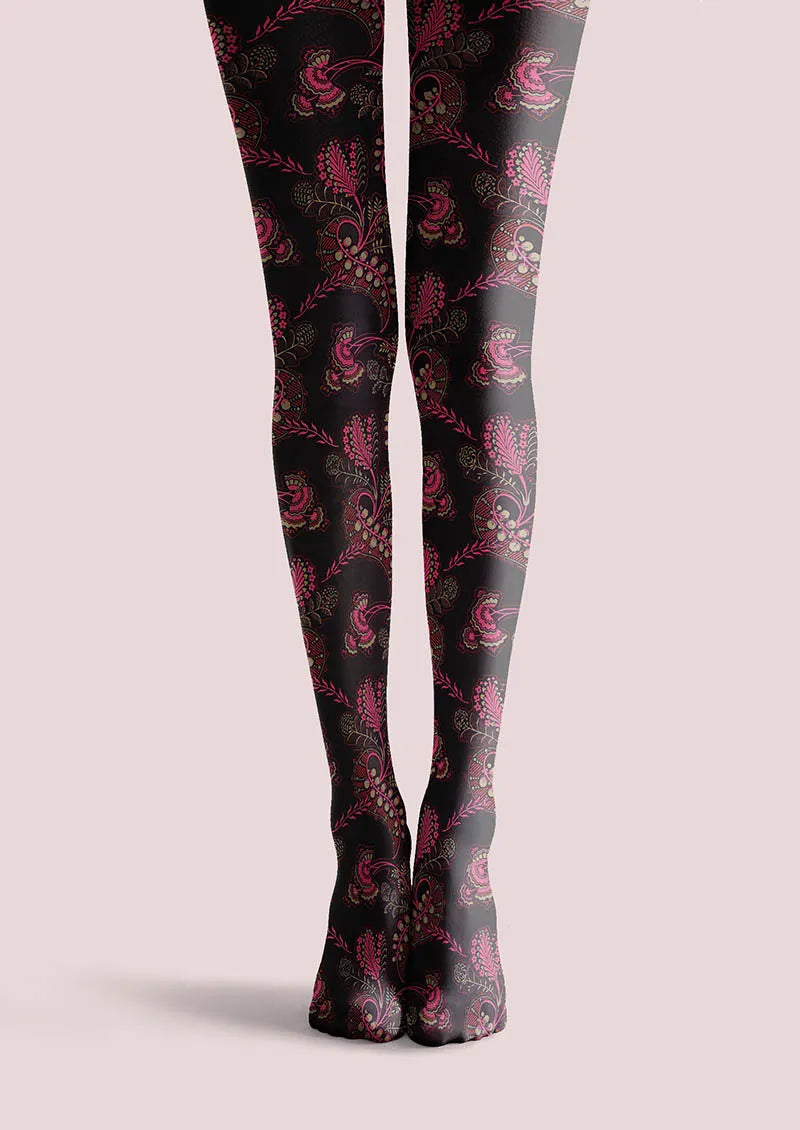 Viken Plan Smoky Pink Paisley Tights Hosiery Pantyhose