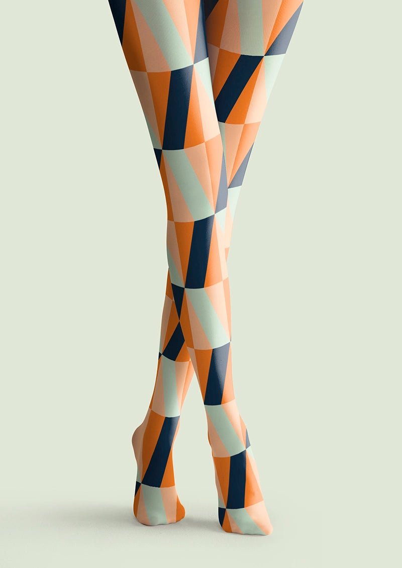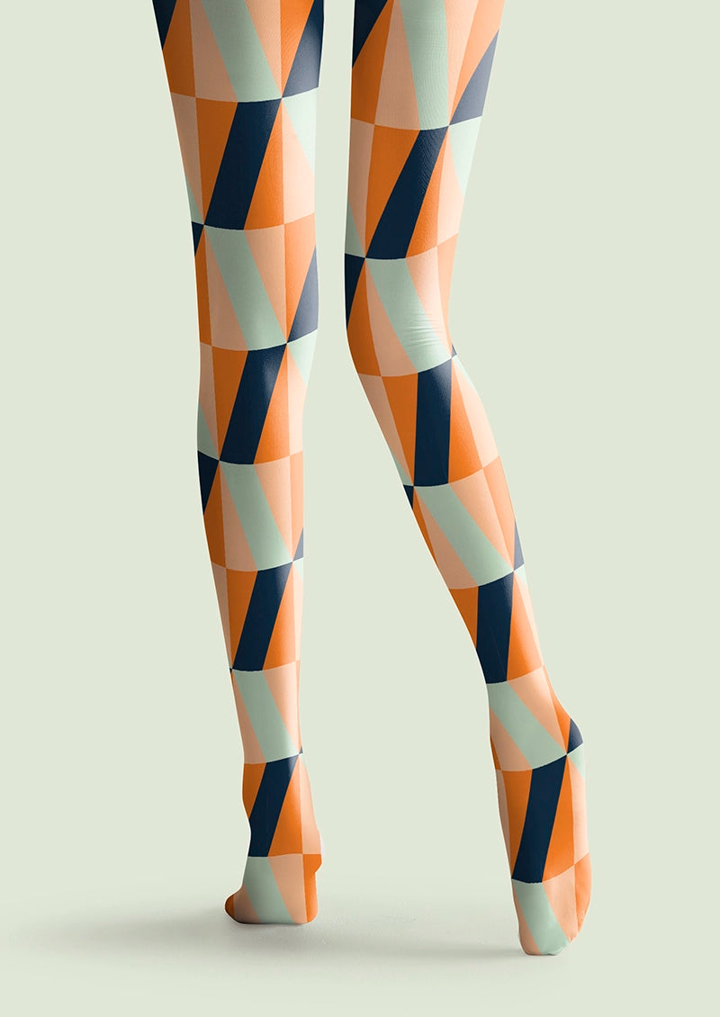 Viken Plan Orange-Green Prism Tights Hosiery Pantyhose