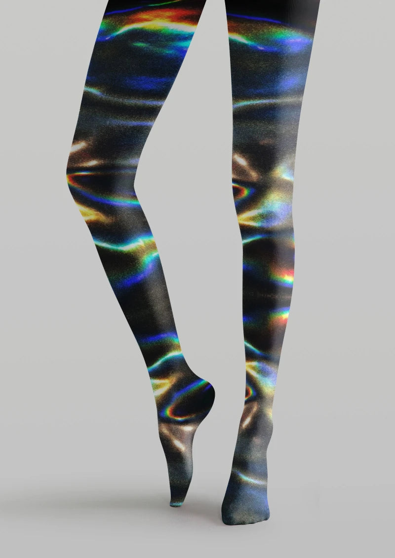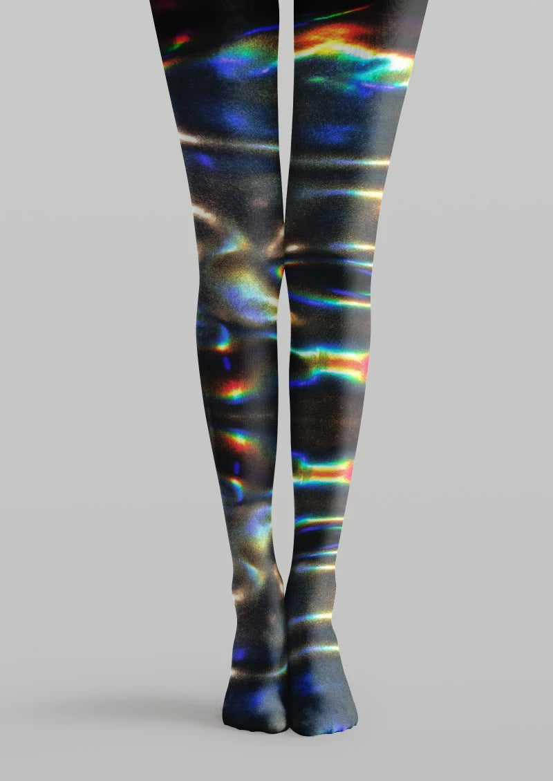 Viken Plan Holographic Striped Tights Hosiery Pantyhose