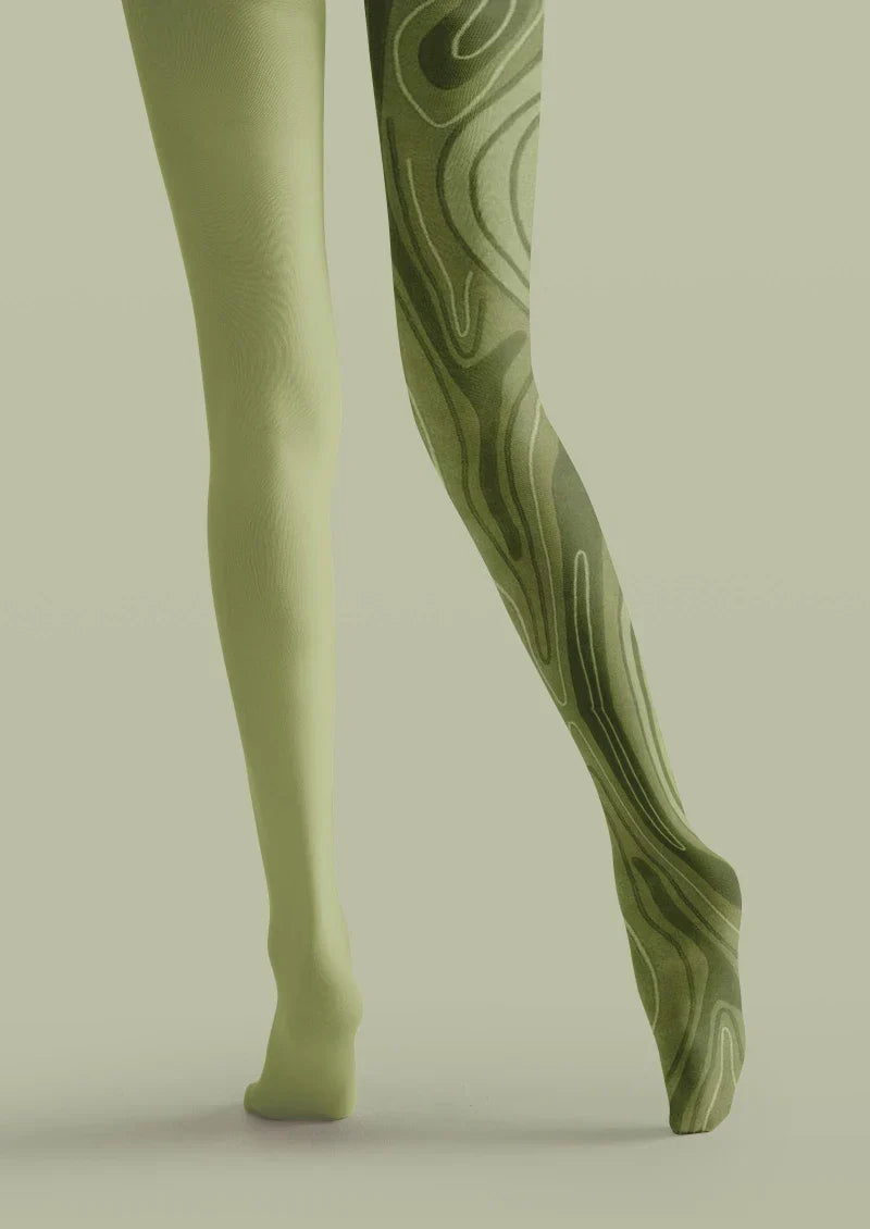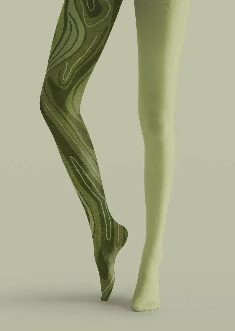 Viken Plan Green Marble Texture Tights Hosiery Pantyhose