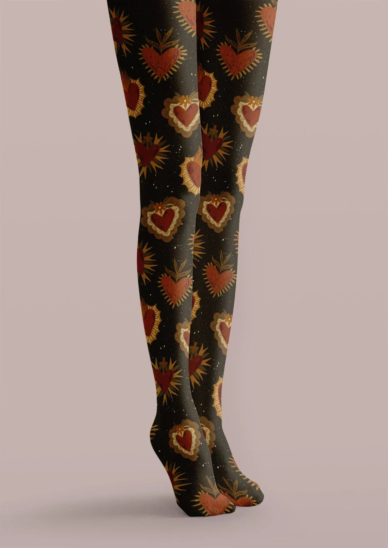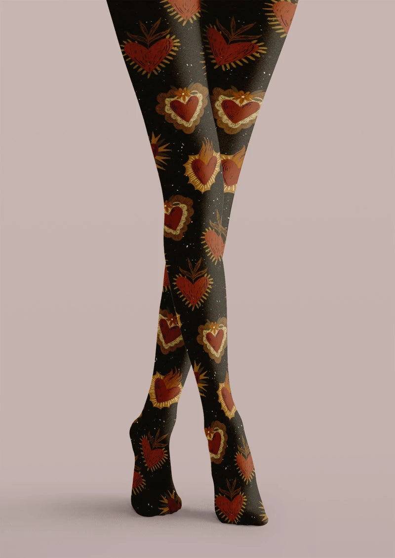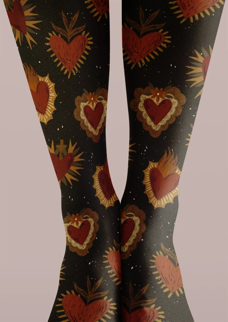 Viken Plan Retro Heart Flame Tights Hosiery Pantyhose