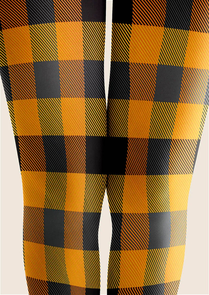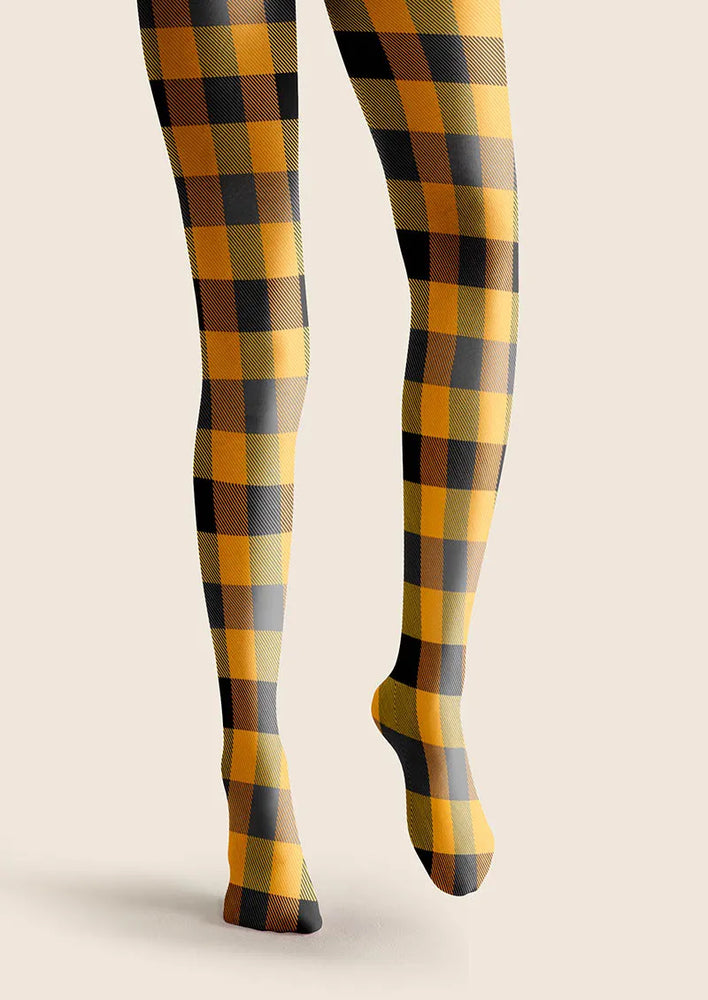 Viken Plan Pumpkin Plaid Tights Hosiery Pantyhose