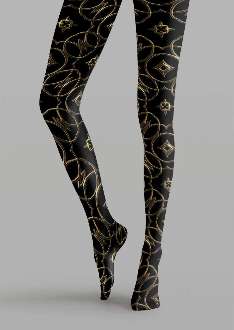 Regular price $39.90Vintage Gold Black Tights with retro gold patterns, elegant and vintage. Perfect for date night or stylish casual looks.