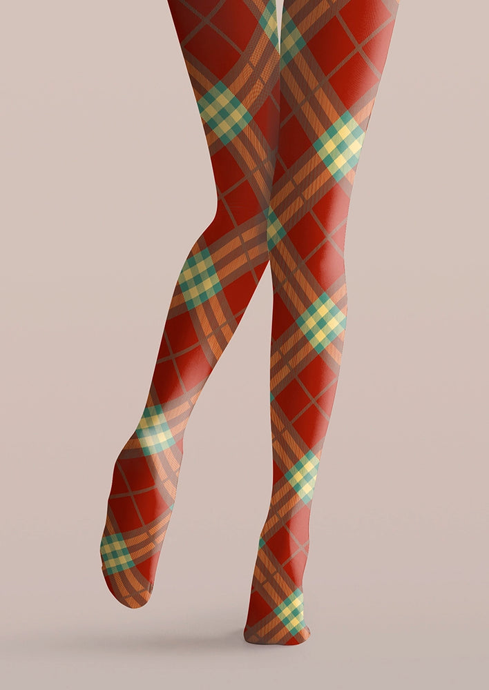 Regular price $39.90Graphic print tights with a red and green checkerboard/plaid design. Simple, colorful, and eye-catching legwear.