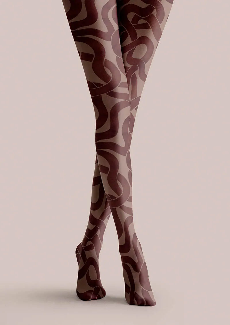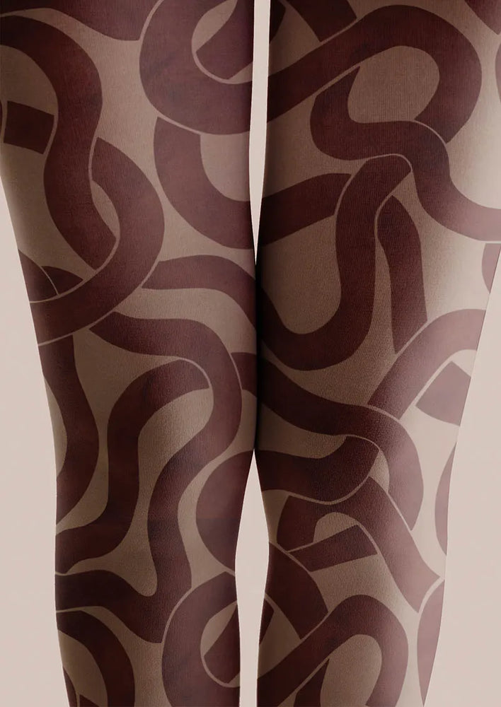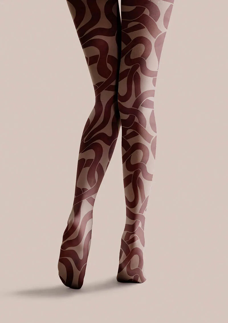 Viken Plan Brown Wave Art Tights Hosiery Pantyhose