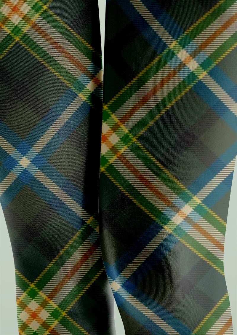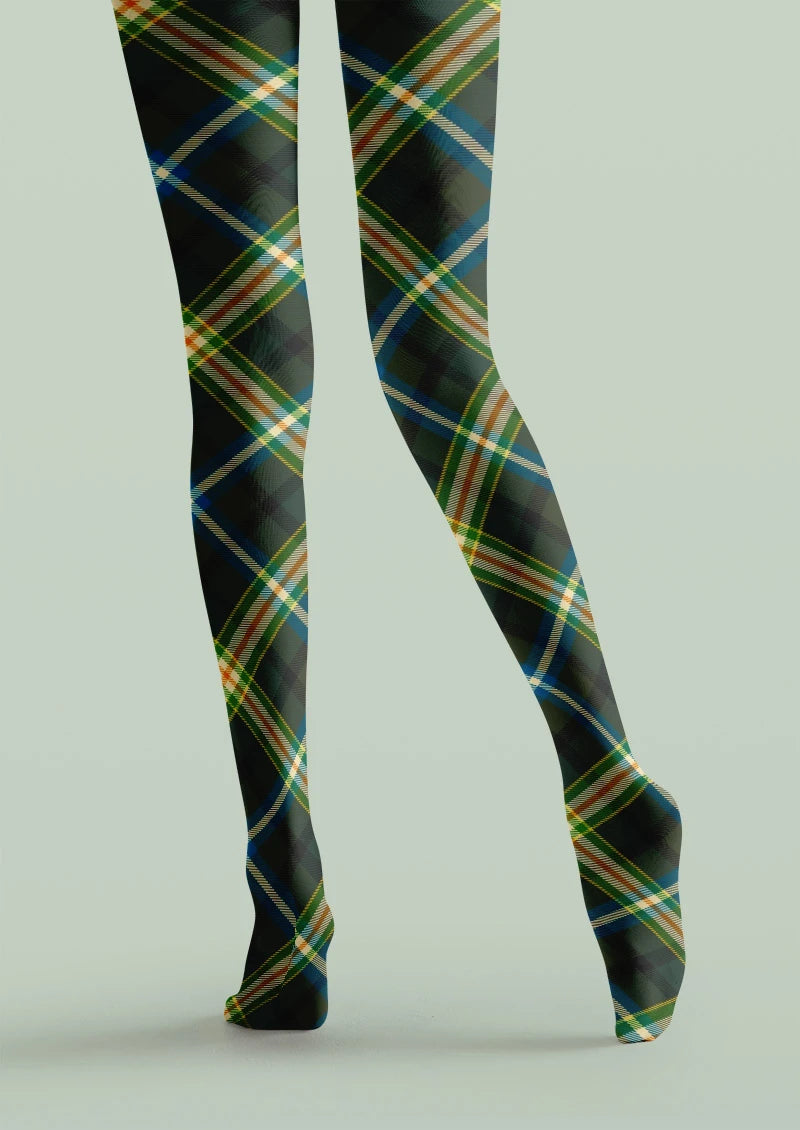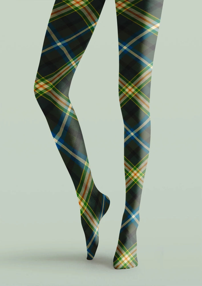 Viken Plan Green Blue Tartan Plaid Tights Hosiery Pantyhose