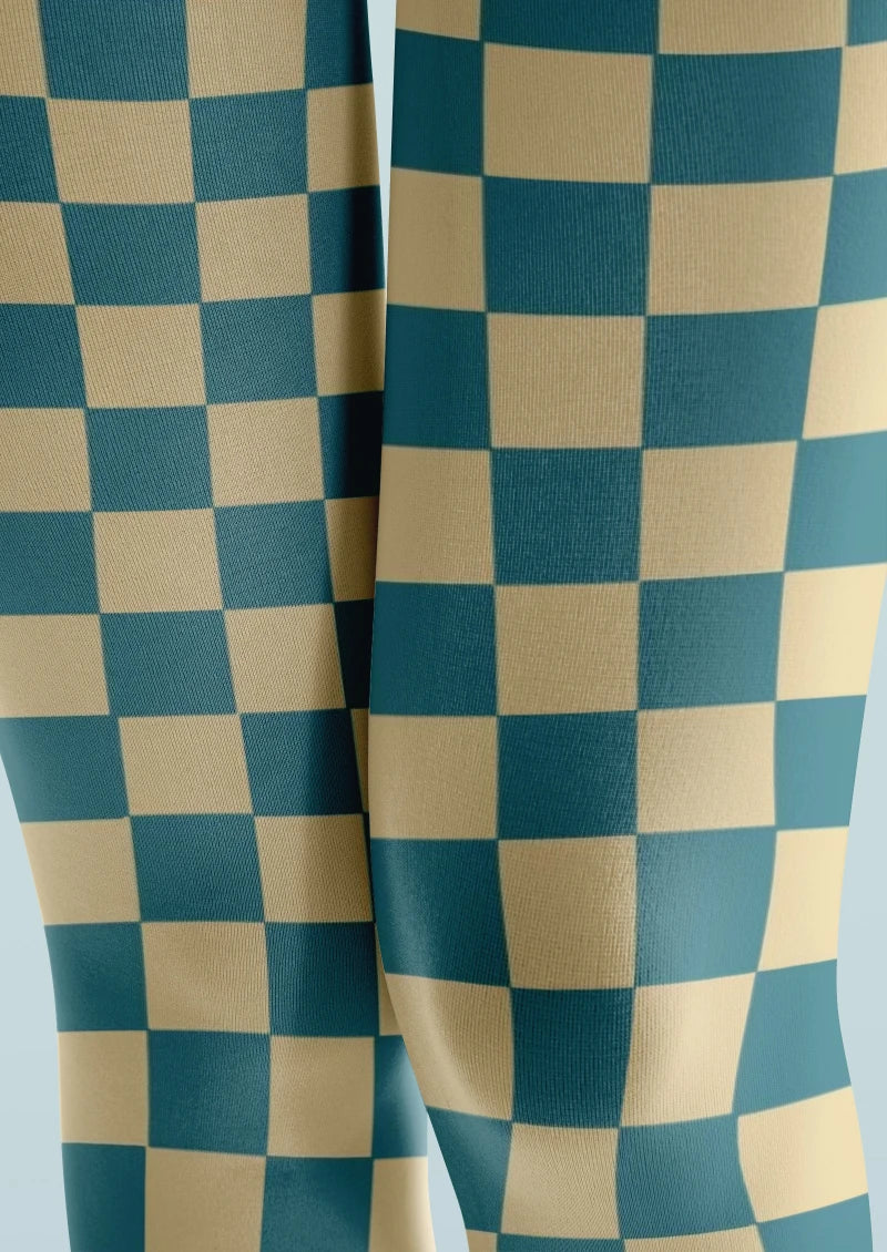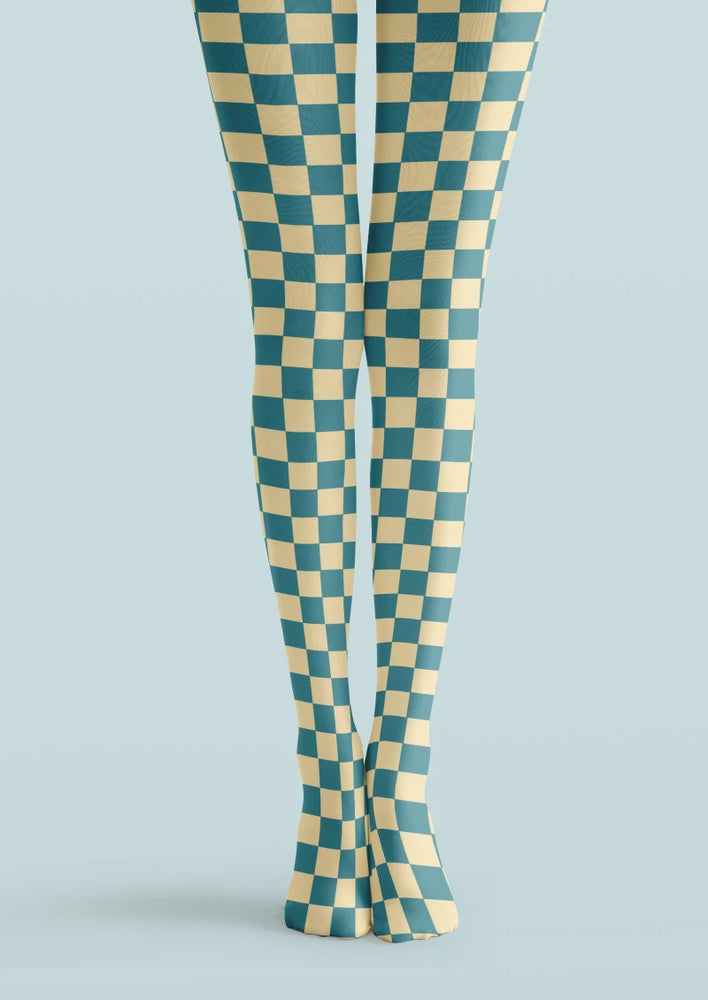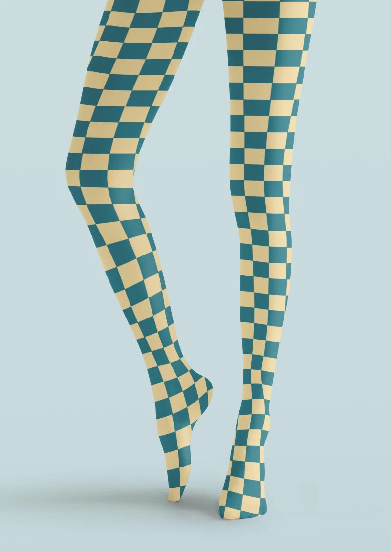 Viken Plan Light Blue Green Plaid Tights Hosiery Pantyhose