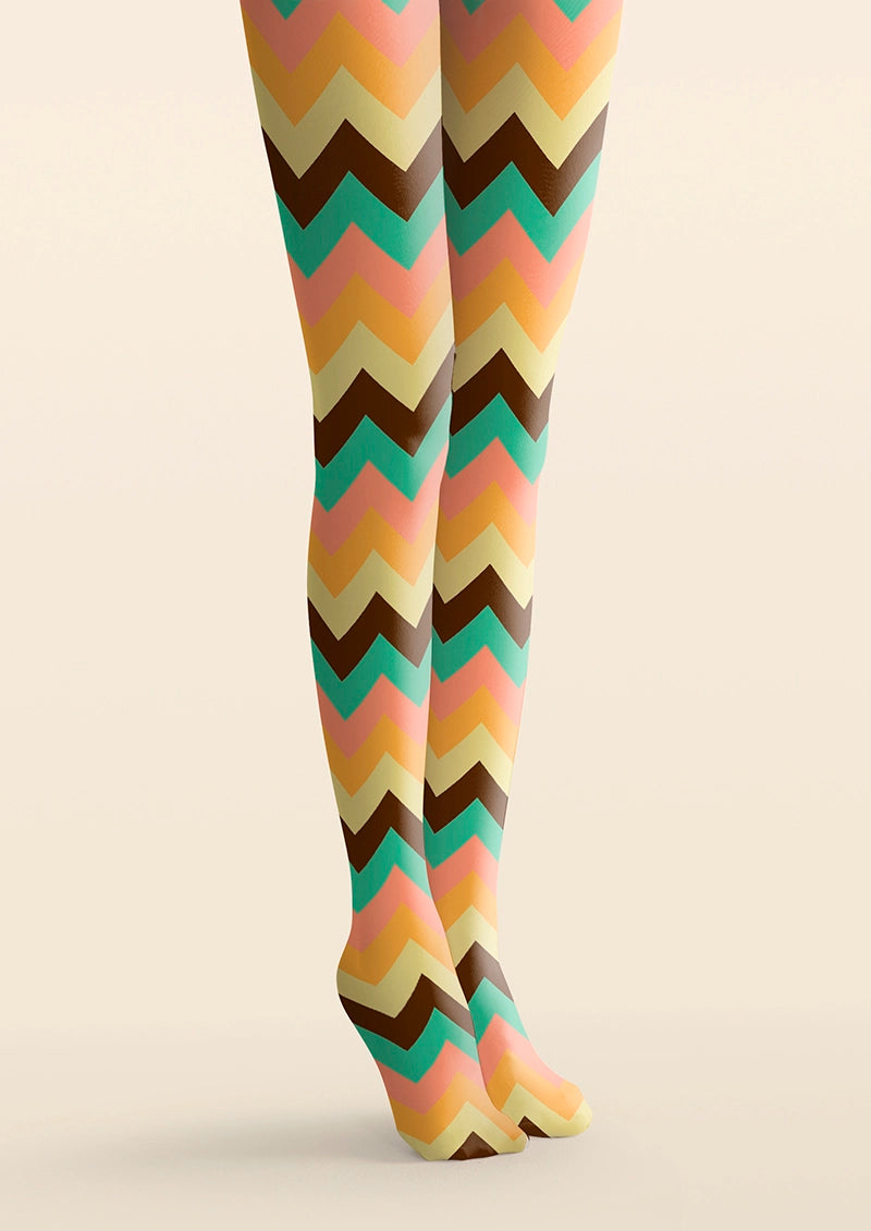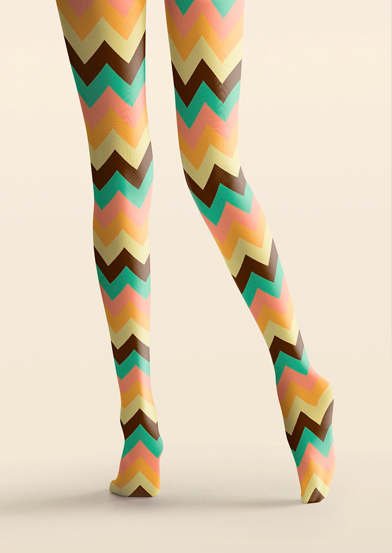 Viken Plan Colorful Jagged Stripes Tights Hosiery Pantyhose
