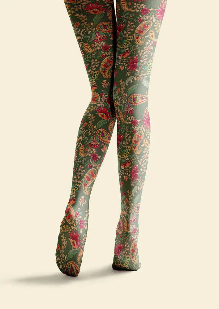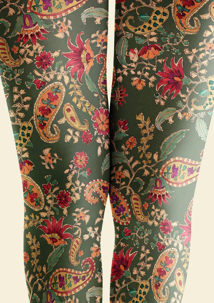 Viken Plan Mint Vintage Paisley Tights Hosiery Pantyhose