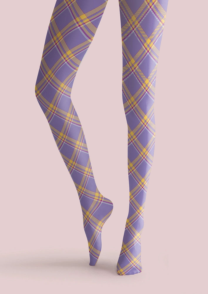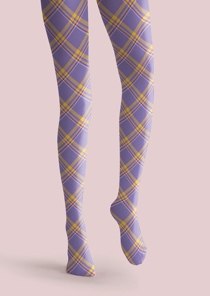 Regular price $39.90Purple and yellow checkered print tights. A minimalist, chic, and versatile legwear essential.