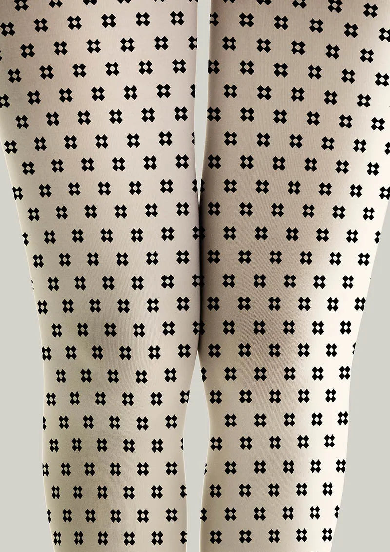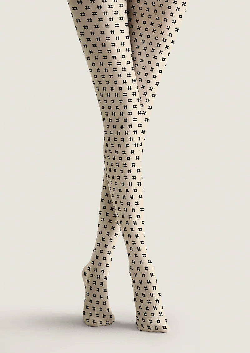 Viken Plan Pop Art Beige Micro Check Tights Hosiery Pantyhose