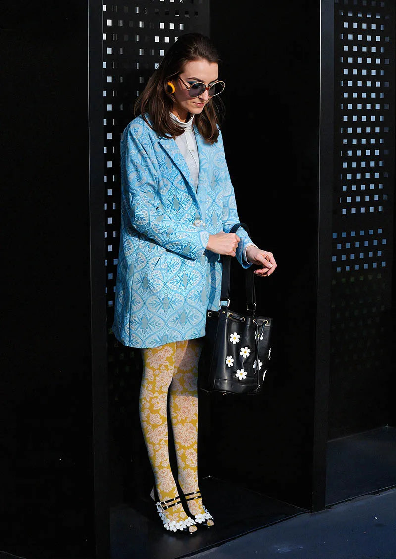 Our Yellow Patterned Tights Collection radiates joy, warmth, and confidence. With hues ranging from soft butter to vivid lemon and mustard, these tights feature playful florals, abstract designs, and artistic motifs that pop against the sunny backdrop. The yellow base energizes your look, while the prints bring unexpected charm and personality.