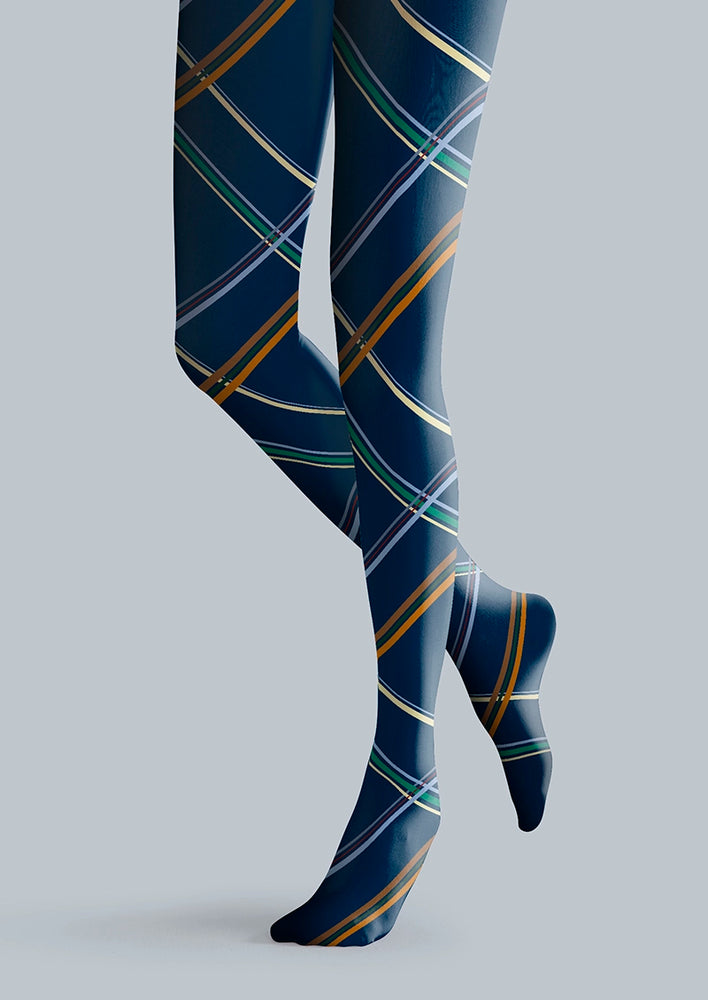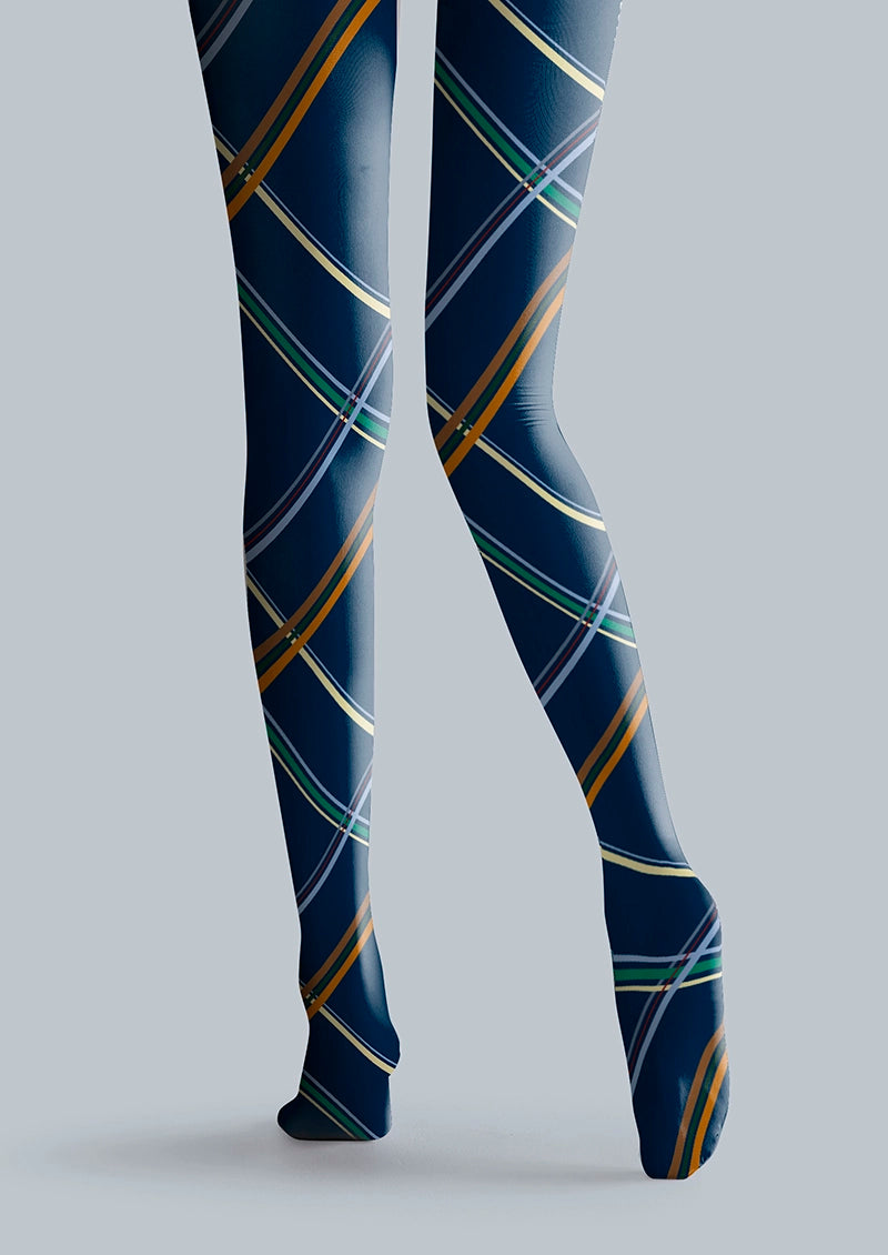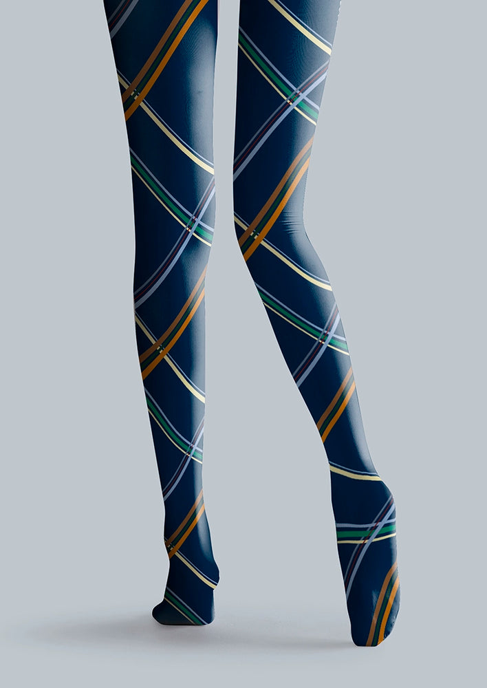 Viken Plan Blue diagonal stripes Tights Hosiery Pantyhose