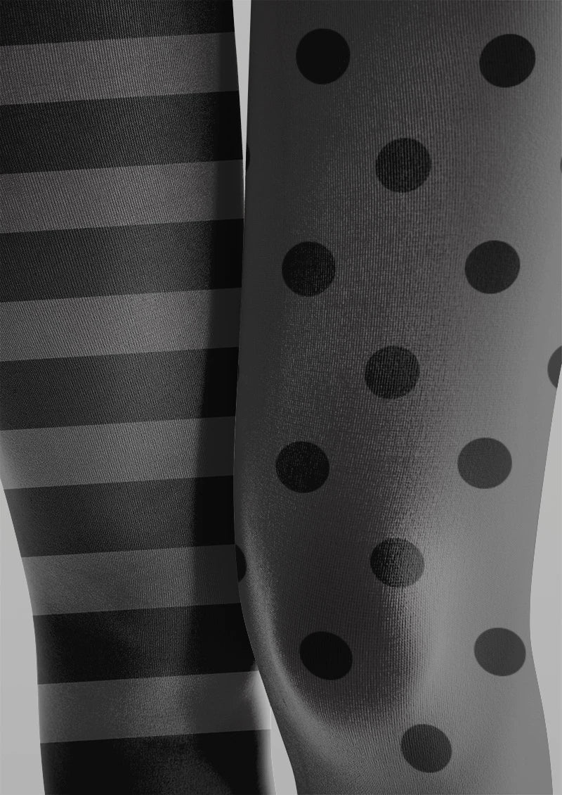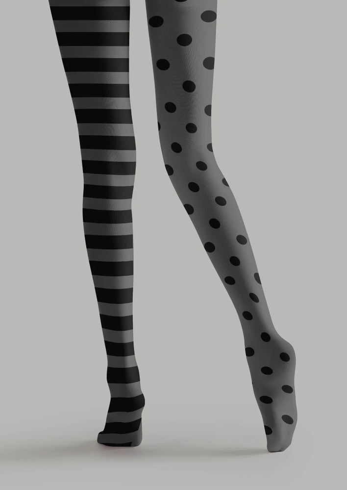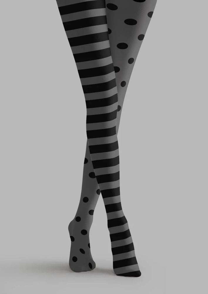 Viken Plan Striped & Polka Dot Gray Tights Hosiery Pantyhose