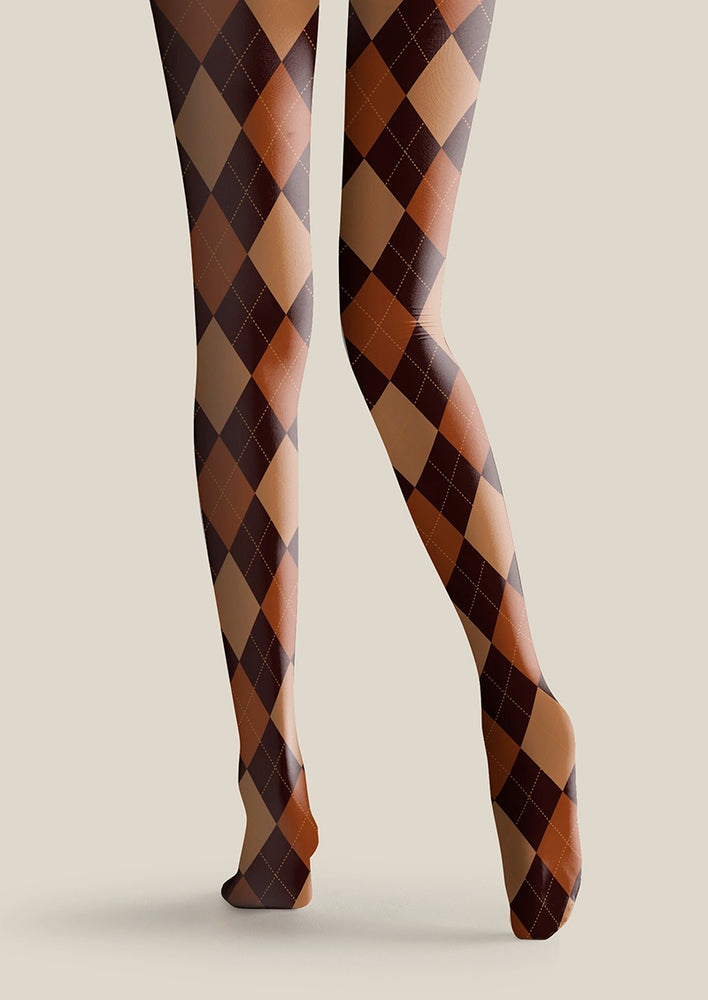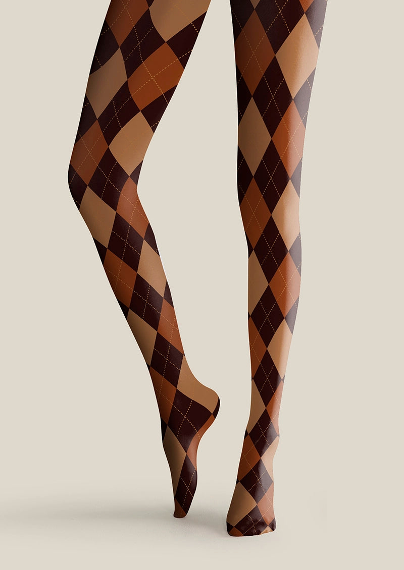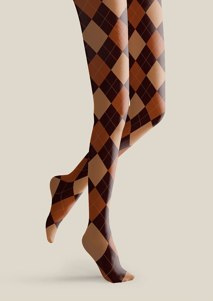 Viken Plan Brown plaid Tights Hosiery Pantyhose