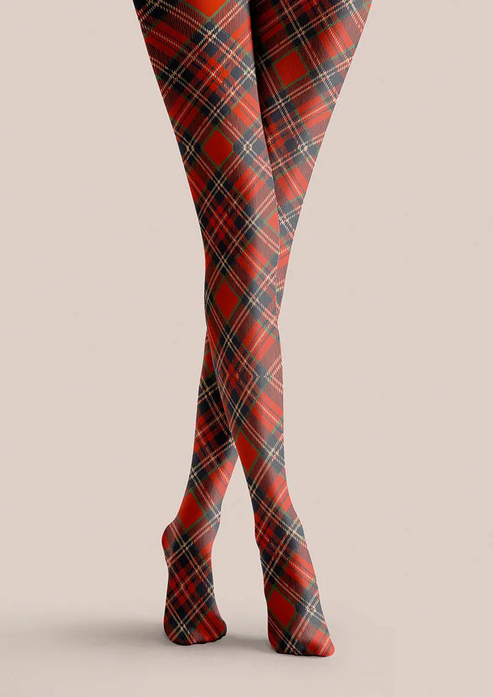 Viken Plan Christmas Fun Art Winterberry Check Tights Hosiery Pantyhose